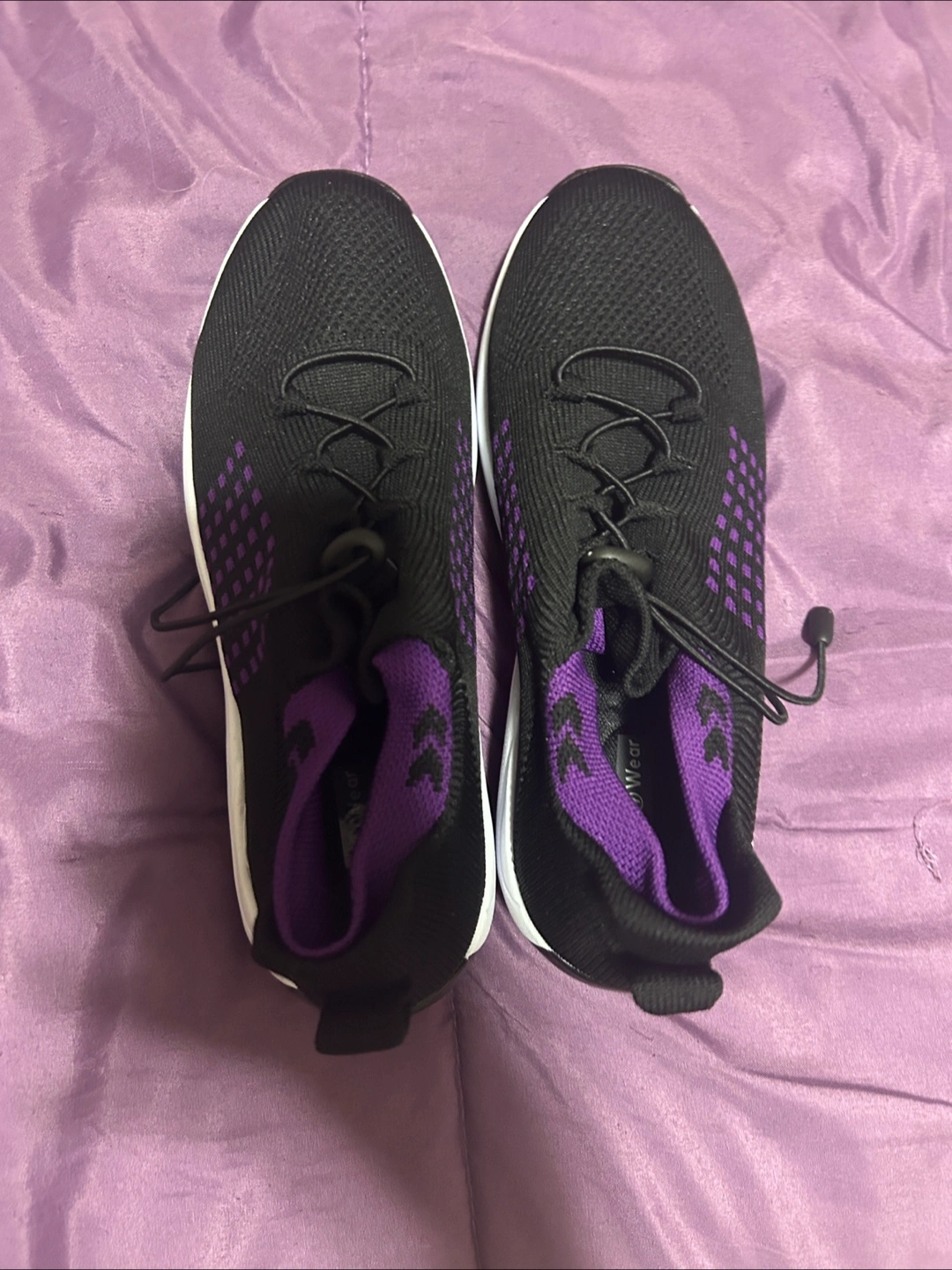 Selling a pair of Comfort Wear sneakers in black with purple accents! Brand new