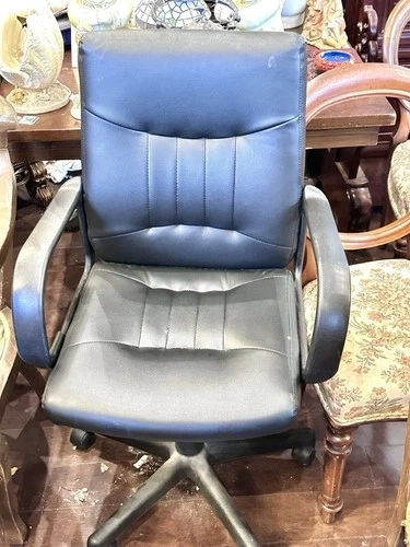 60Experience the perfect blend of comfort and functionality with our black swivel office chair, made by black faux leather. Moving Sale: Vintage Scandinavian Furniture (1970s–1990s)! We’re moving and letting go of our beautiful mid-century & Nordic design pieces — sofas, tables, shelves, and more. 50cm * 45cm * 102cm Condition: In good shape, with some signs of age and use. Please review the photos carefully for details.