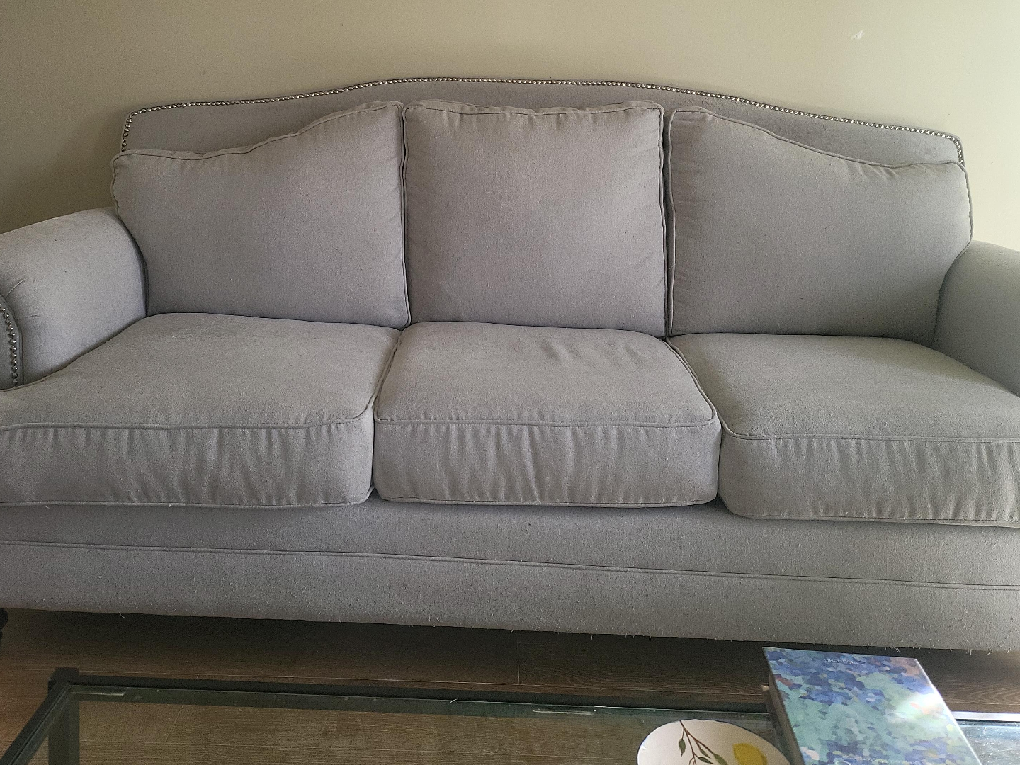 0Selling a comfy grey sofa. It's in good condition and perfect for a living room or den. The cushions are soft and supportive, making it a great place to relax after a long day. It would be a great addition to any home!
