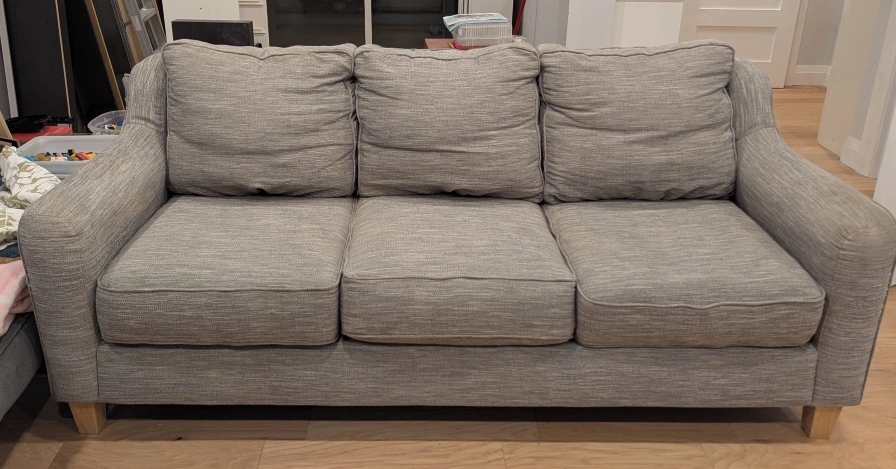 86Selling a comfy three-seater sofa! It's in good condition and ready for a new home. The neutral grey colour will fit in with any decor. Perfect for relaxing after a long day! Loved sofa. Needs a deep clean. Very comfortable. Lazy boy furniture $80 Port union and Lawrence Fastest pick up!