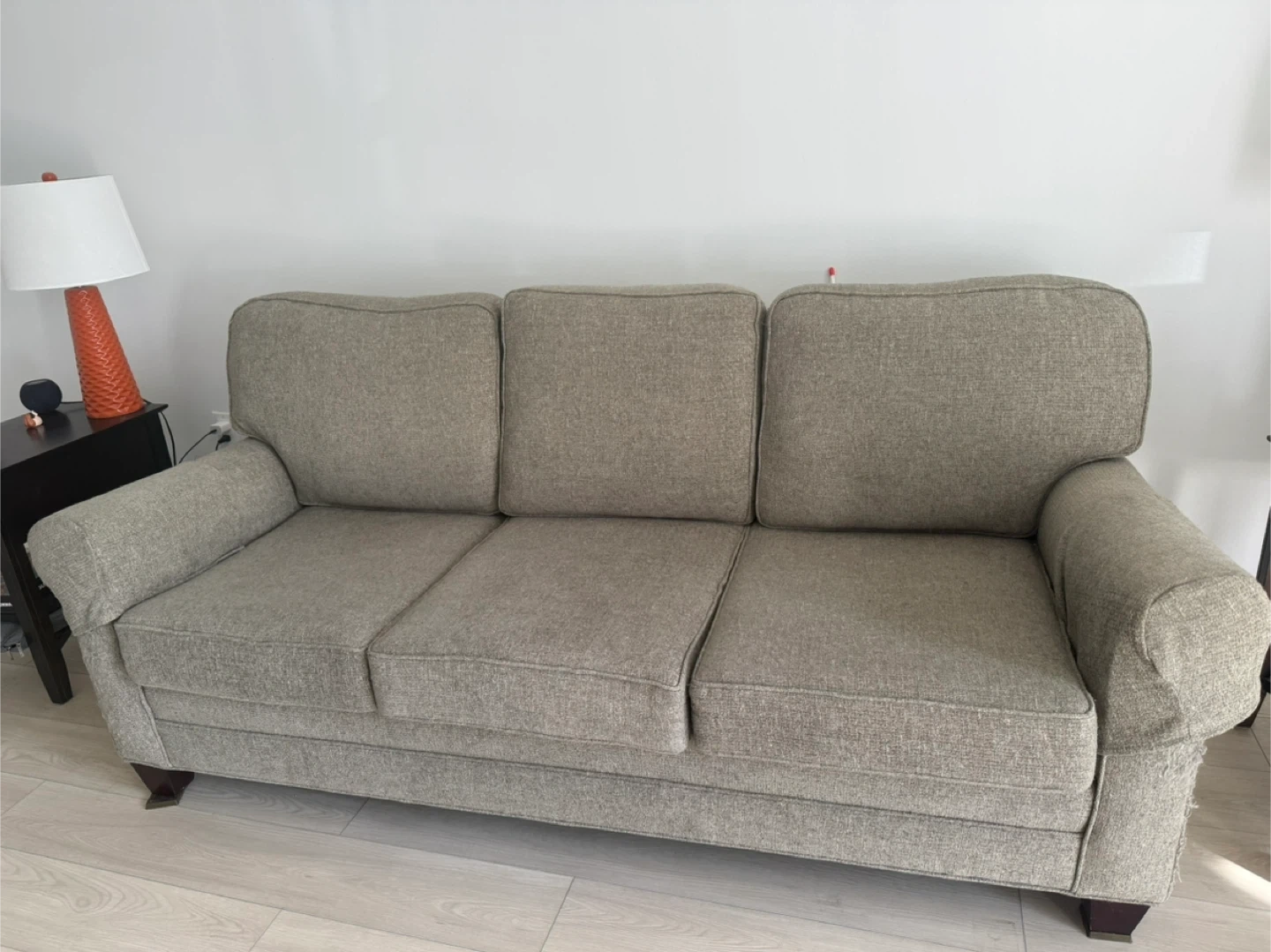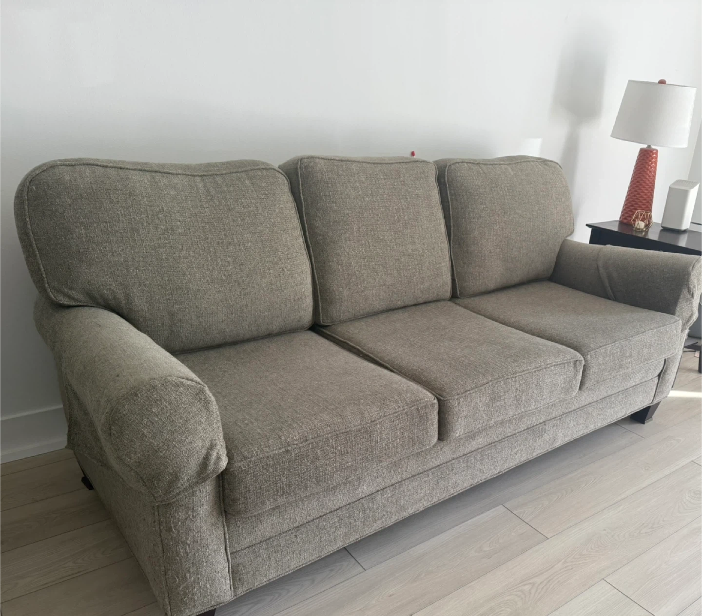 60Looking to sell this comfy three-seat sofa! It's in great condition and would be a perfect addition to any living room. The neutral colour makes it easy to match with any decor. It’s ready for a new home!