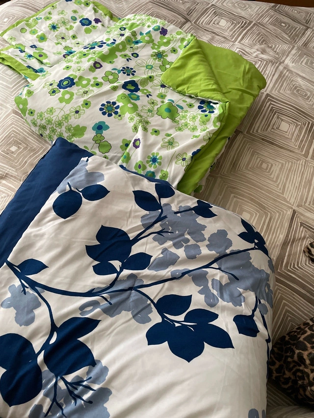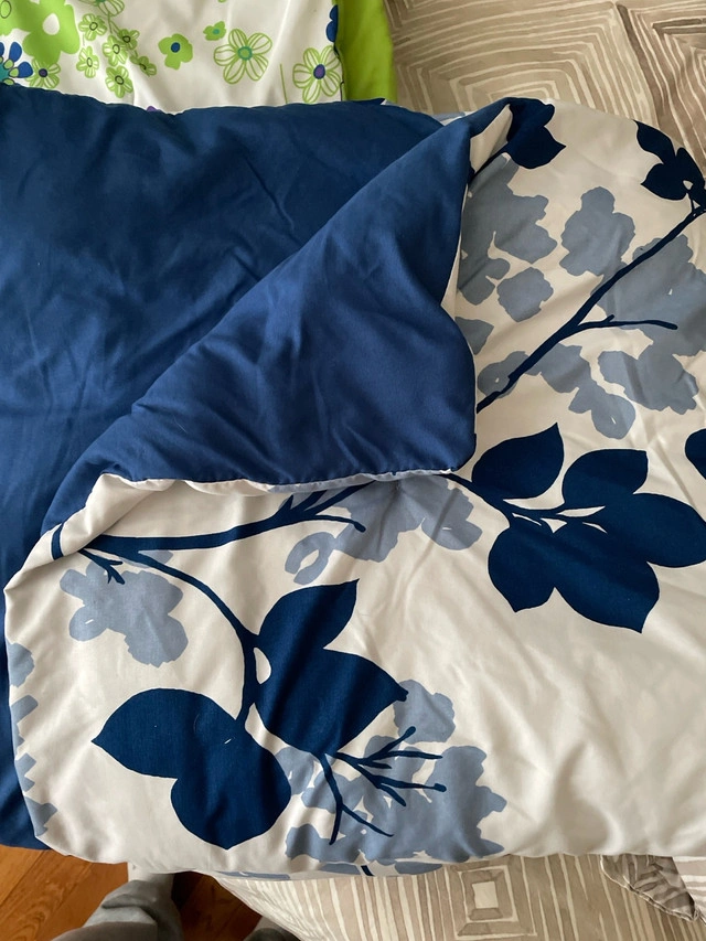 34Hi all, up for sale are two gently used comforters. Both are for double beds and are in perfect like new condition. The green one comes with two matching pillow cases and I’m asking $30. The blue one is just the comforter and I’m asking $20. $40 for both. Thanks.