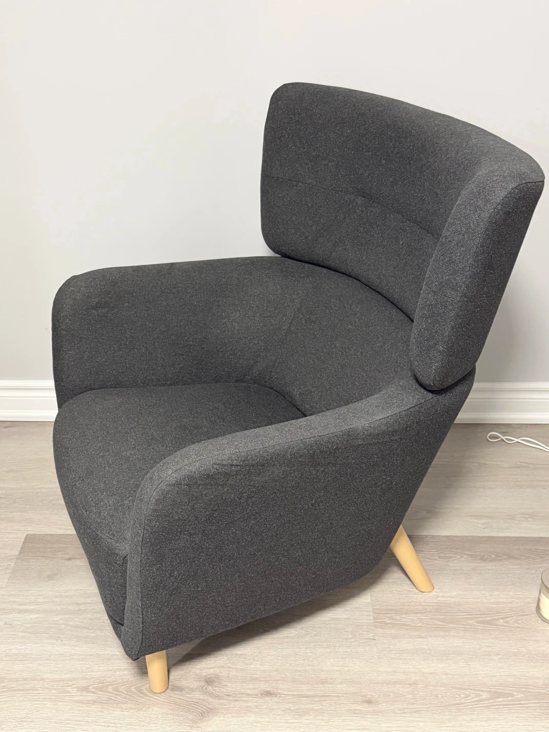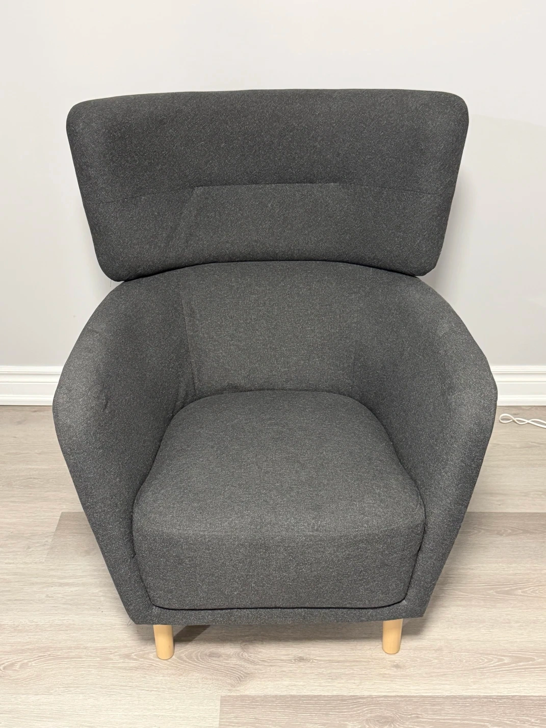 21Selling a modern dark gray armchair in excellent condition. Very very COMFORTABLE! It’s very comfortable and perfect for a living room, bedroom, or reading corner. No rips! gently used in a smoke-free, pet-free home. Wooden legs are sturdy and stable. This can fit in a big SUV (fully Assembled) Cash only and pickup only.