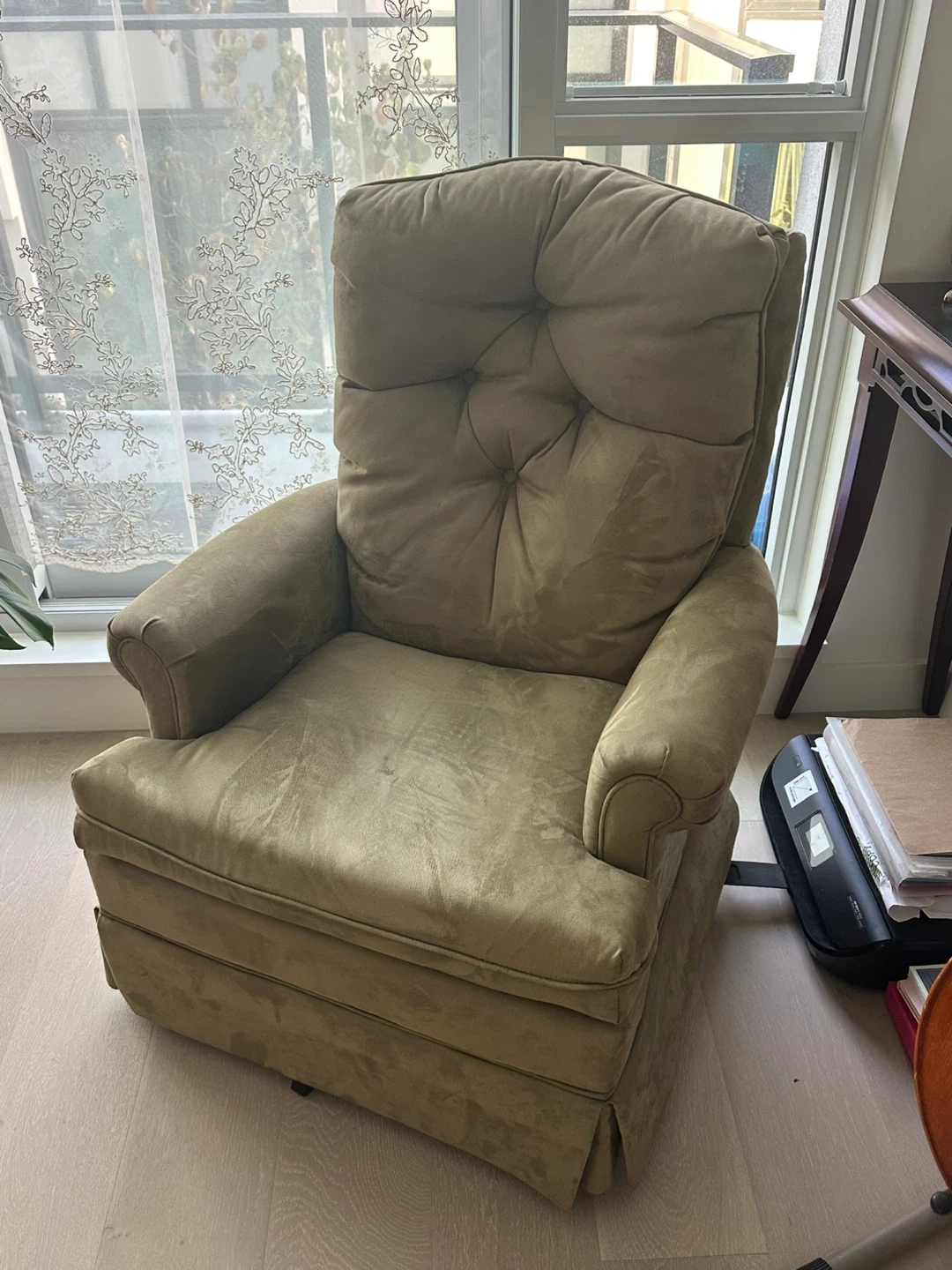 5Selling a comfy armchair that's in great shape! It's a lovely addition to any living space, perfect for relaxing after a long day. The fabric is soft and inviting, and the chair itself is sturdy and well-maintained
