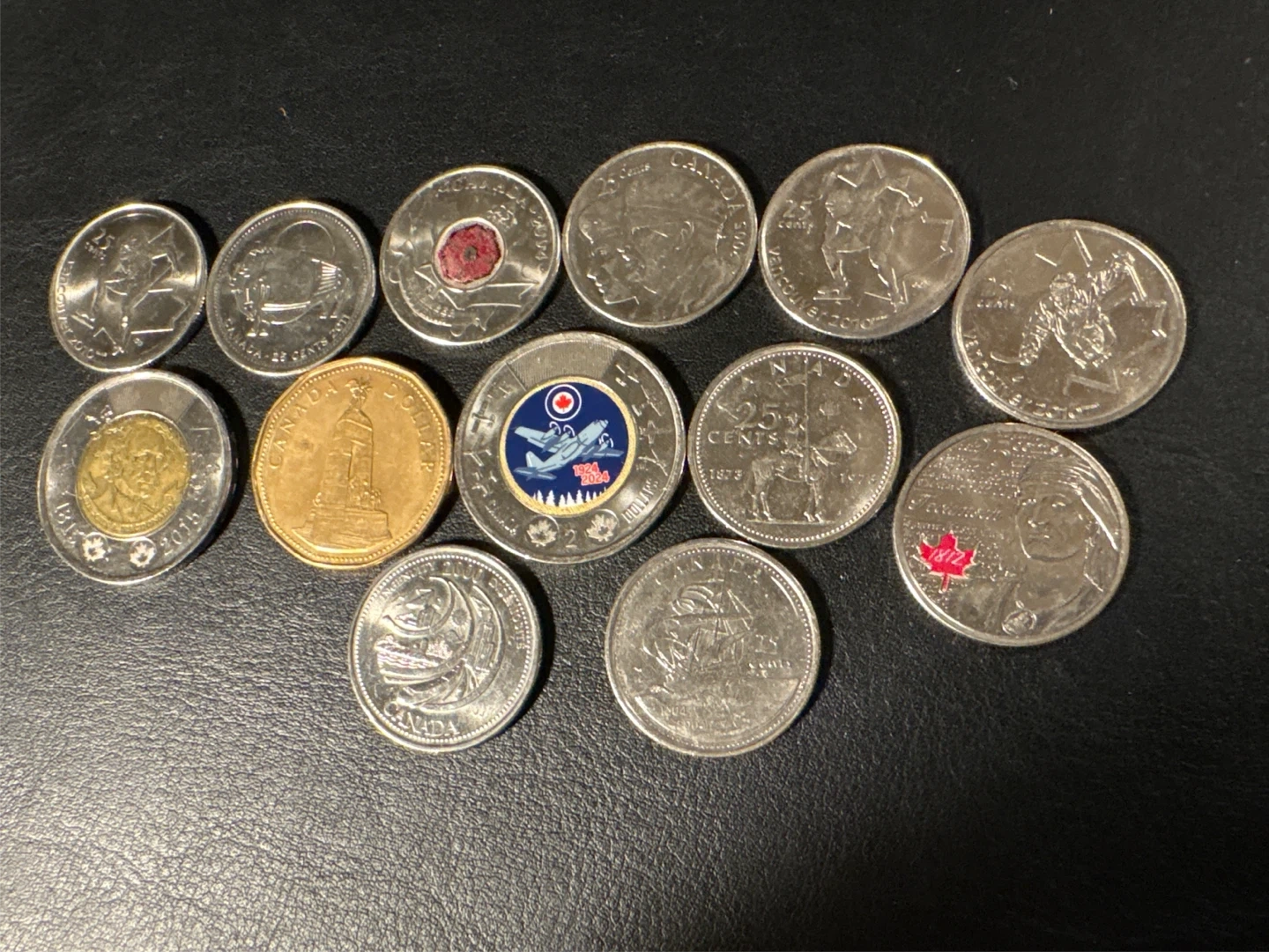 Selling a collection of Canadian coins! Includes loonies, toonies, and quarters. Great for collectors or anyone looking to add to their coin stash. Pick up only