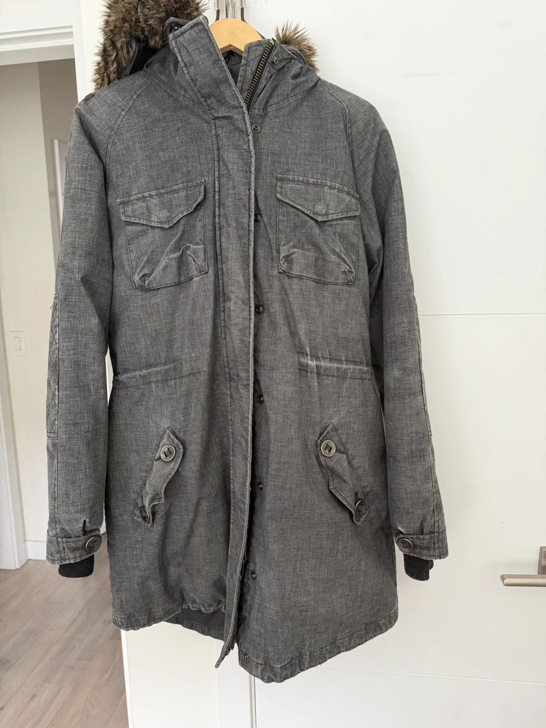 18Selling a Community (by Aritzia) winter parka in a lovely grey colour! It's a size large and made with hemp & recycled polyester fibres. Perfect for staying warm during the colder months!