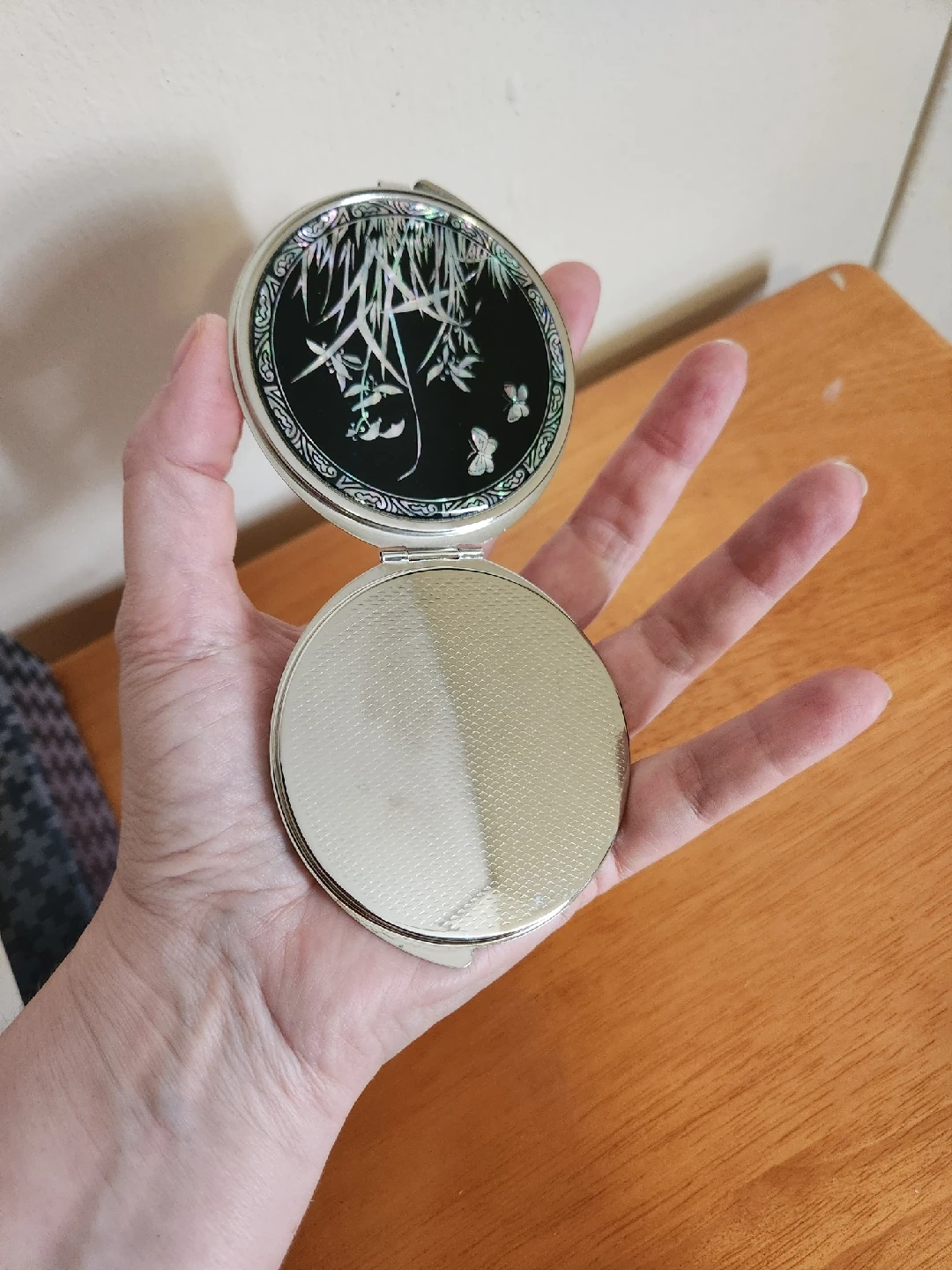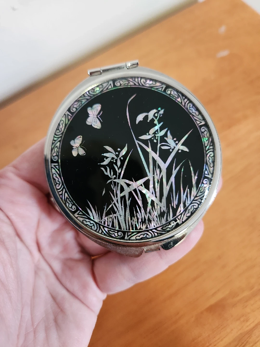 68Selling a cute compact mirror! It has a lovely floral design on the cover. Perfect for your purse or travel bag!
