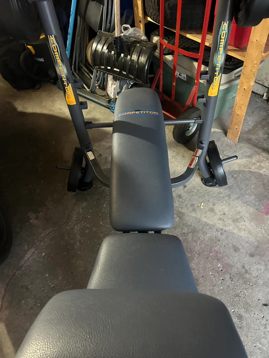 133Selling a Competitor weight bench that's in good condition. It comes with weights so you can start working out right away. Perfect for setting up a home gym!