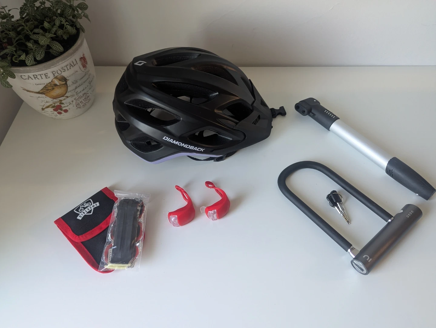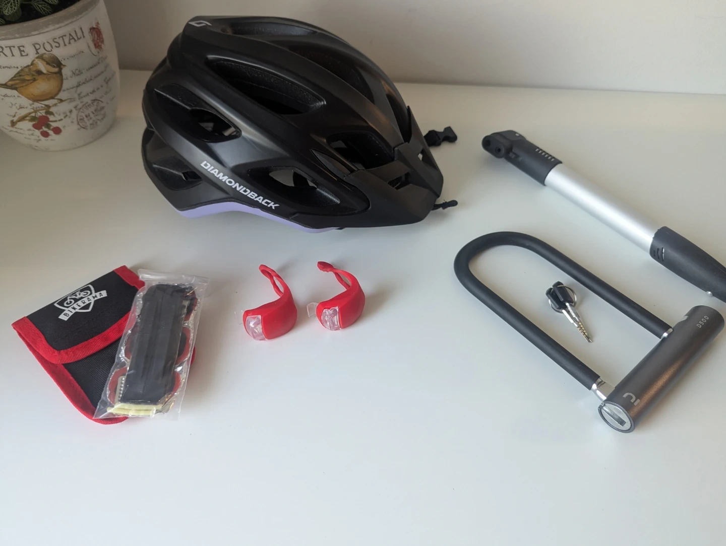 Ready to hit the road? πŸŒ† Selling a complete, gently-used bike gear bundle β€” everything you need for safe and smooth rides around Toronto! πŸ’¨ βœ… WHAT’S INCLUDED (all in great condition): 1️⃣ Diamondback Helmet – Black, comfy & protective πŸ–€ 2️⃣ DOCK D03 U-Lock – Strong security + keys included πŸ”‘ 3️⃣ Portable Hand Pump – No more getting stuck with a flat! 4️⃣ 2 LED Safety Lights – Be visible at night πŸŒ™ (rear red lights) 5️⃣ Supercycle Saddle Bag + Patch Kit – Handy for quick fixes on the go ✨ Everything works great β€” perfect for city riders! 🚲