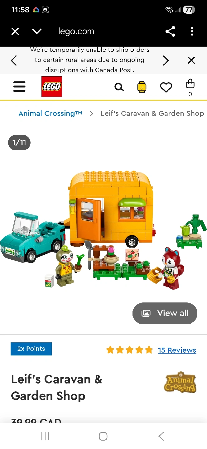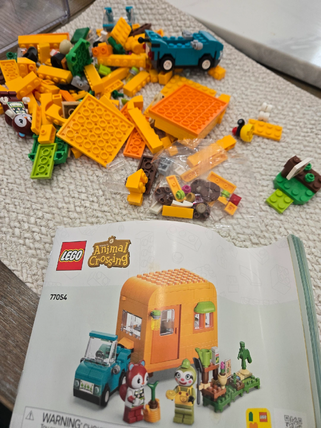 COMPLETE Lego animal crossing building set My kid recieved this as a birthday gift and we started opening up and assembling it. We got as far as building the small car and she lost interest. It is new open box and 1 bag was left unopen. So I matched every peice with the manual to confirm its complete. Purchased for 39.99 Price is firm Pick up near 22nd skytrain new west