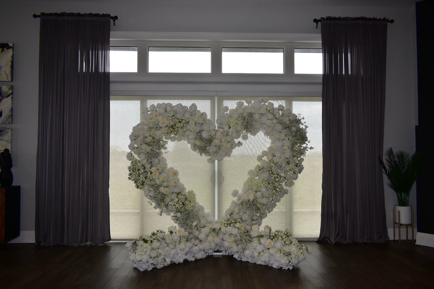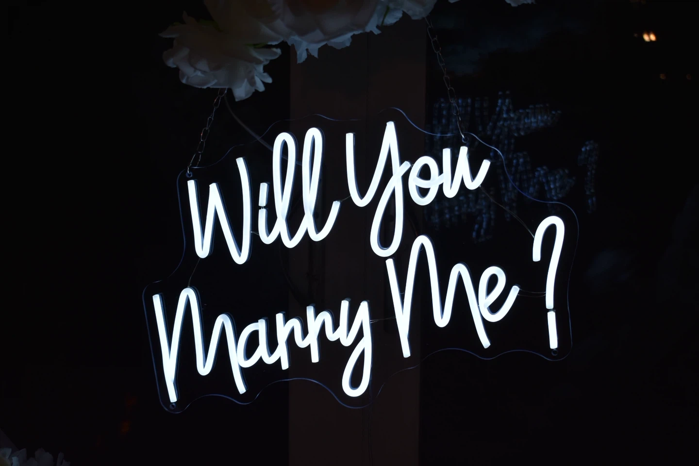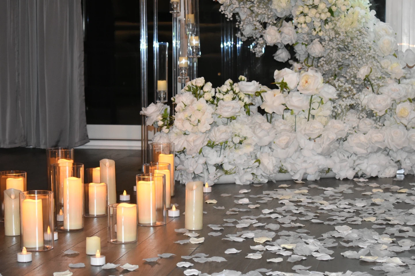 163I’m selling this ENTIRE proposal setup. Complete package. It includes: - White Heart Arch - Cream Rose Petals - Acrylic Candle Holders - Flameless Candles - Neon “WYMM” Sign - Acrylic Candelabras Everything you will need for the perfect proposal setup. Perfect for a rental business or personal use. This setup is brand new and never been used. In perfect condition.