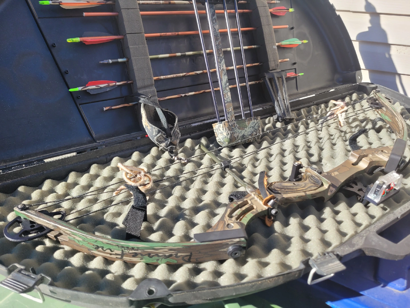 Compound bow and case Tree stand Arrows- field and hunting points Two portable targets One Large (5'x5' shoot able area) target arrow tuner (roller) XXL New insulated coveralls pick up in Summerhill, Airdrie