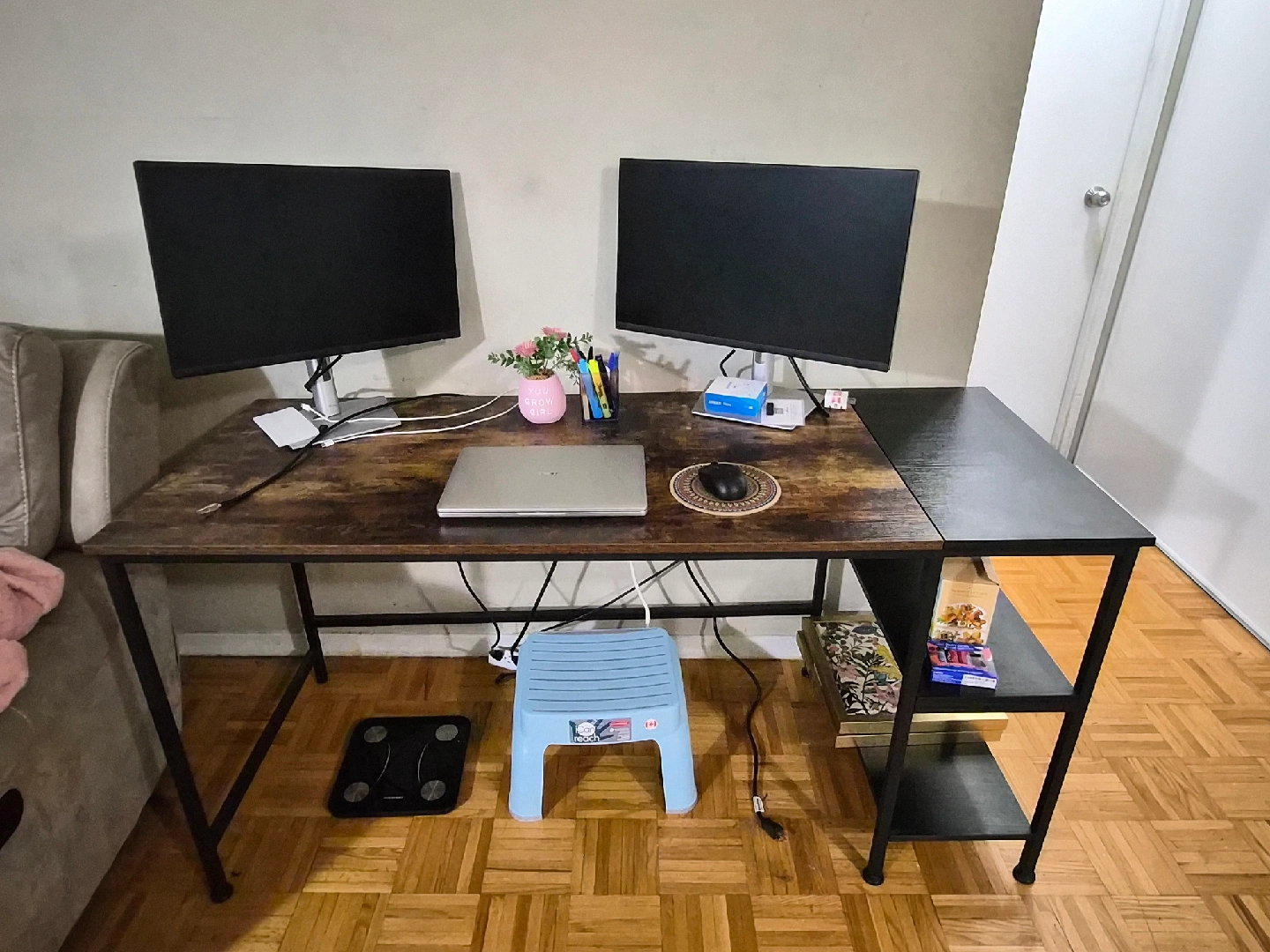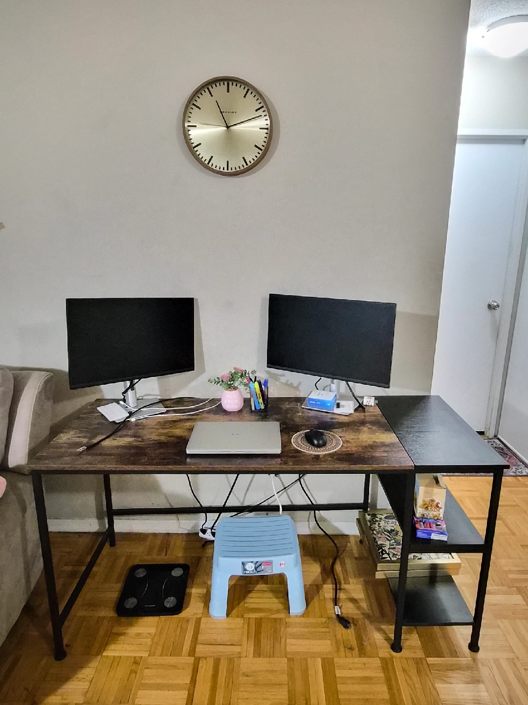 Computer Desk β Rustic Wood & Black Metal | 60β x 23.5β x 29β Large in size Great quality desk in excellent condition! Perfect for a home office, studying, or gaming setup. π₯οΈ Fits two monitors + laptop comfortably with space to spare. πͺ΅ Nice rustic wood look with a sturdy black metal frame β super solid. π Has built-in shelves on the side for books, decor, or storage. πͺ Very stable and easy to clean. Dimensions: 60β (L) Γ 23.5β (W) Γ 29β (H) Pickup only. If its listed it is available For Serious buyers only