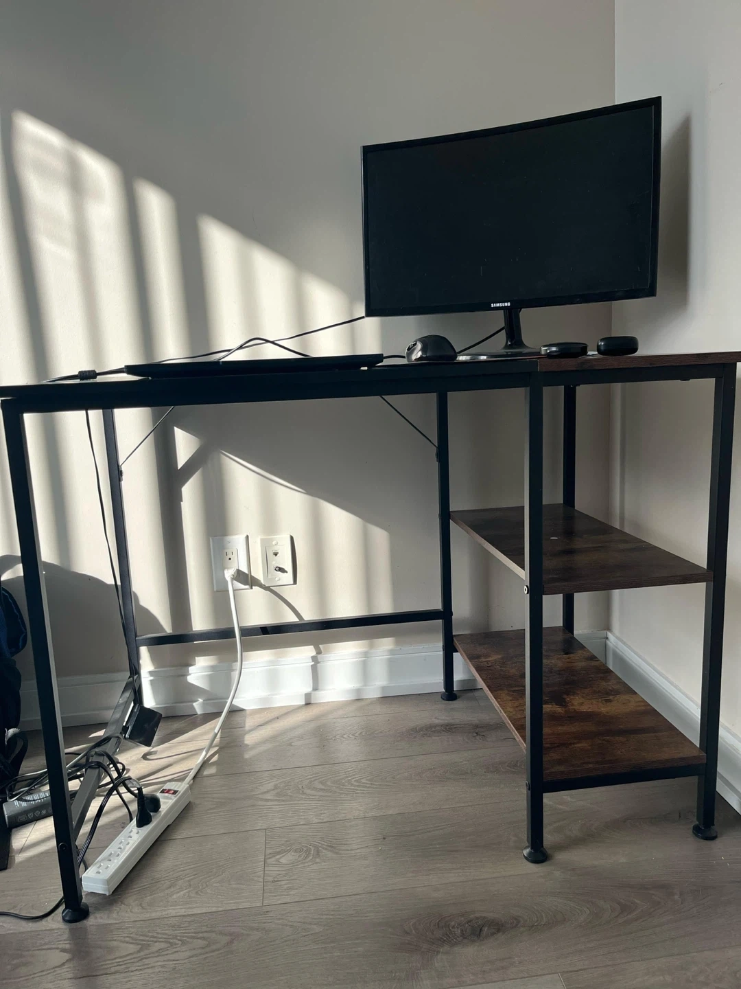 79Selling a work table which can conveniently fit a laptop, keyboard and monitor and very convenient for anyone working from home. Was originally brought for $200 + tax Can be dissembled for easy transport.