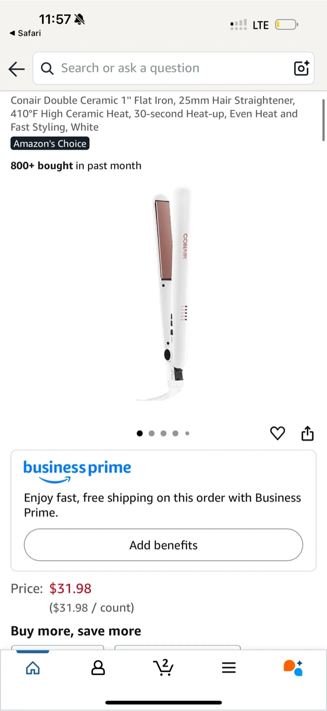 45Selling a Conair Double Ceramic 1" Flat Iron in white. It's in great condition and comes with the original box! It heats up quickly and provides even heat for fast styling. Originally bought for $31.98