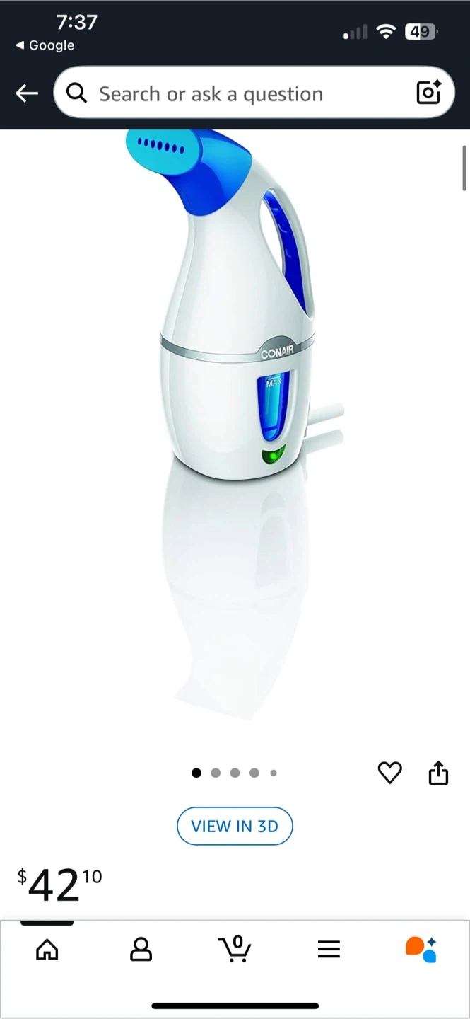 Conair Complete Steam Hand Held Fabric Steamer, 1100W, White/Blue Amazon price - $42 Selling price - $8 Gently used