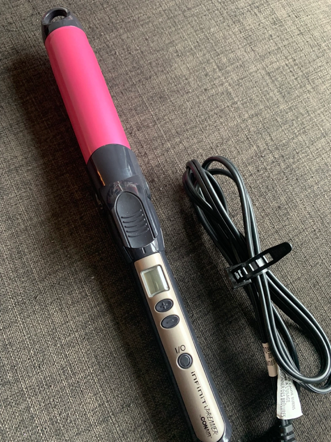 88Pink and black curling wand. Digital temperature control. Includes cord and clip.