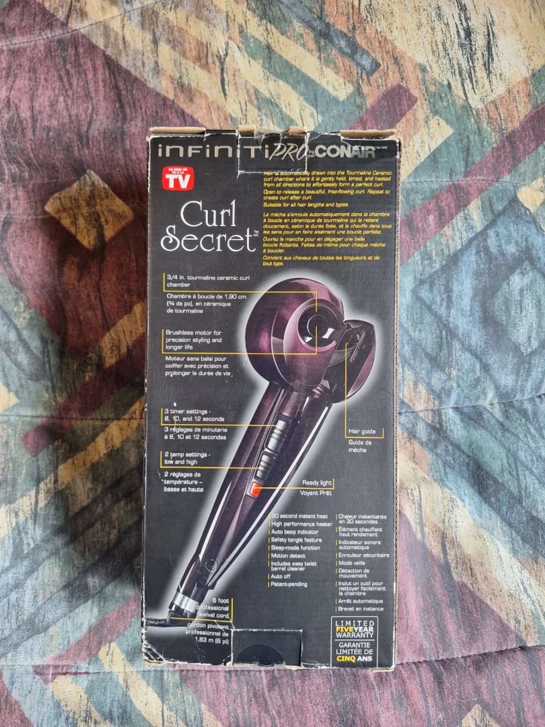 65💲 $40 (Retails $100+) Barely used once — basically new Original box + manual included Tourmaline ceramic = smooth, frizz-free curls 2 heat + 3 timer settings (loose waves or tight curls) Easy salon-style curls at home 📍 Pickup near Birchmount & Sheppard