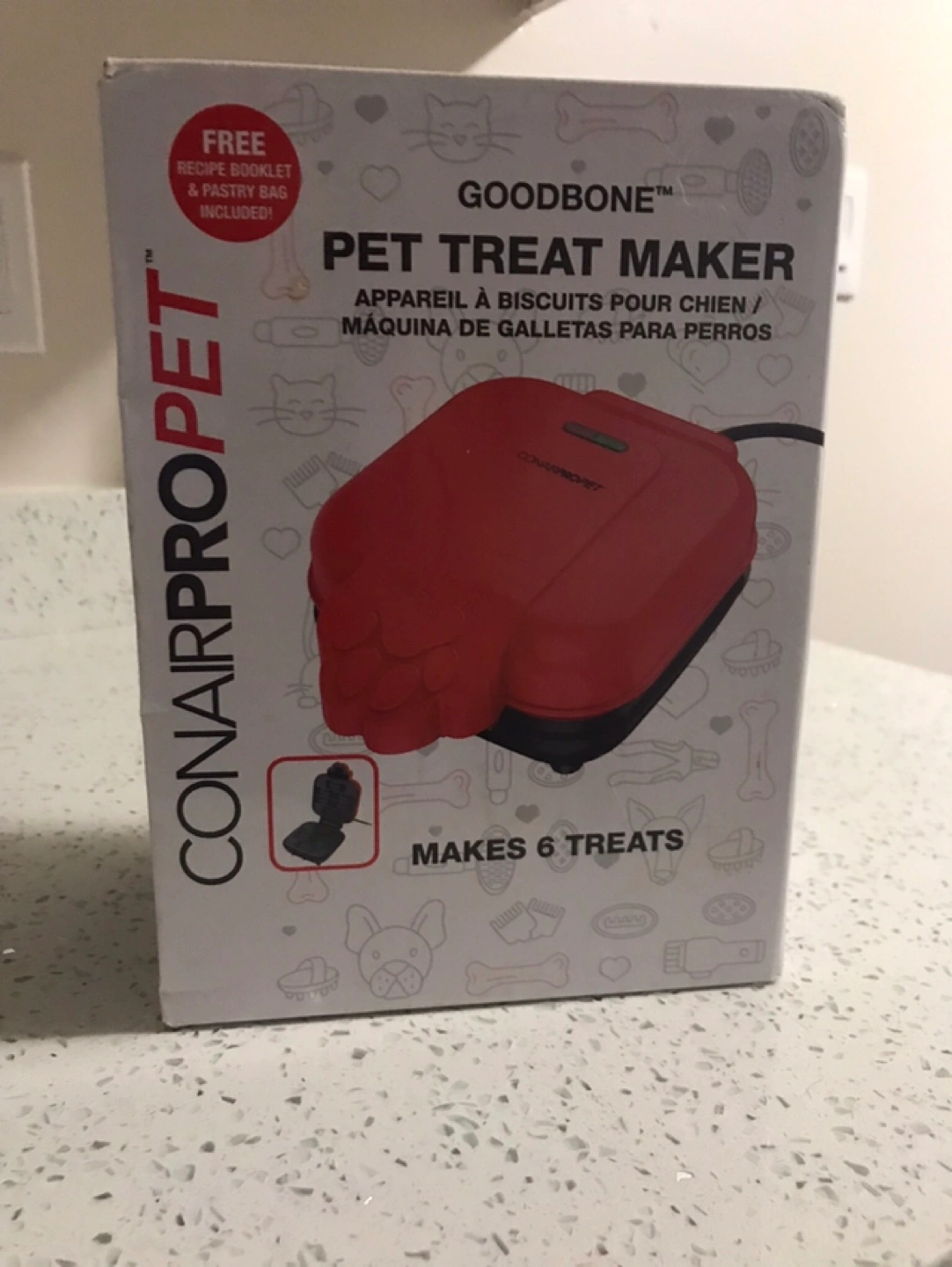 15Brand new in box. Make your own dog treats with the ConairPROPET Goodbone Pet Treat Maker! It makes 6 treats at a time and comes with a free recipe booklet and pastry bag