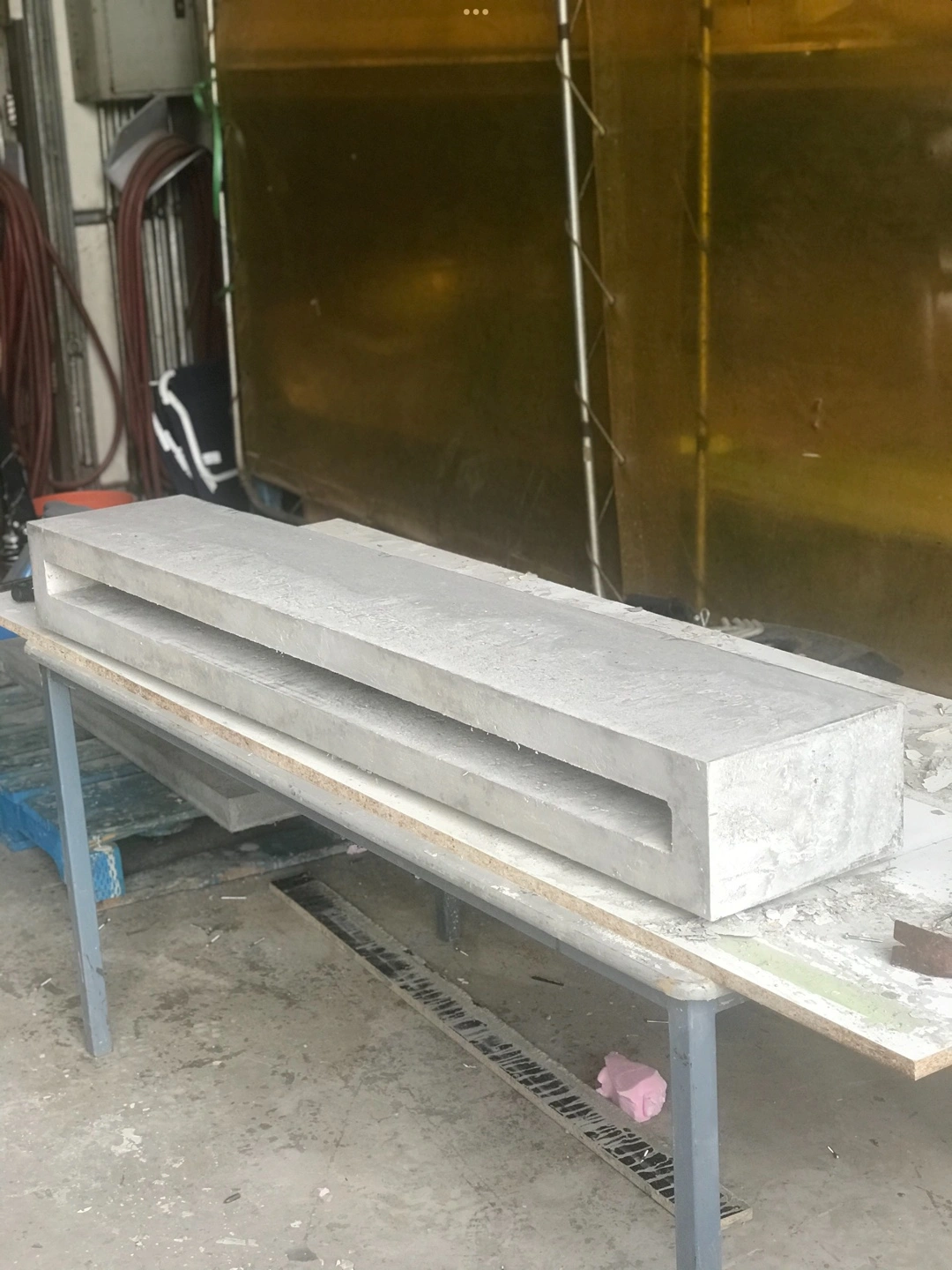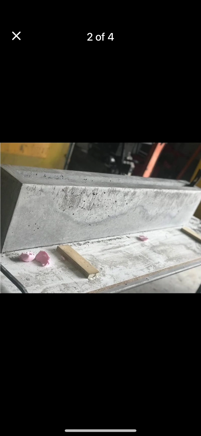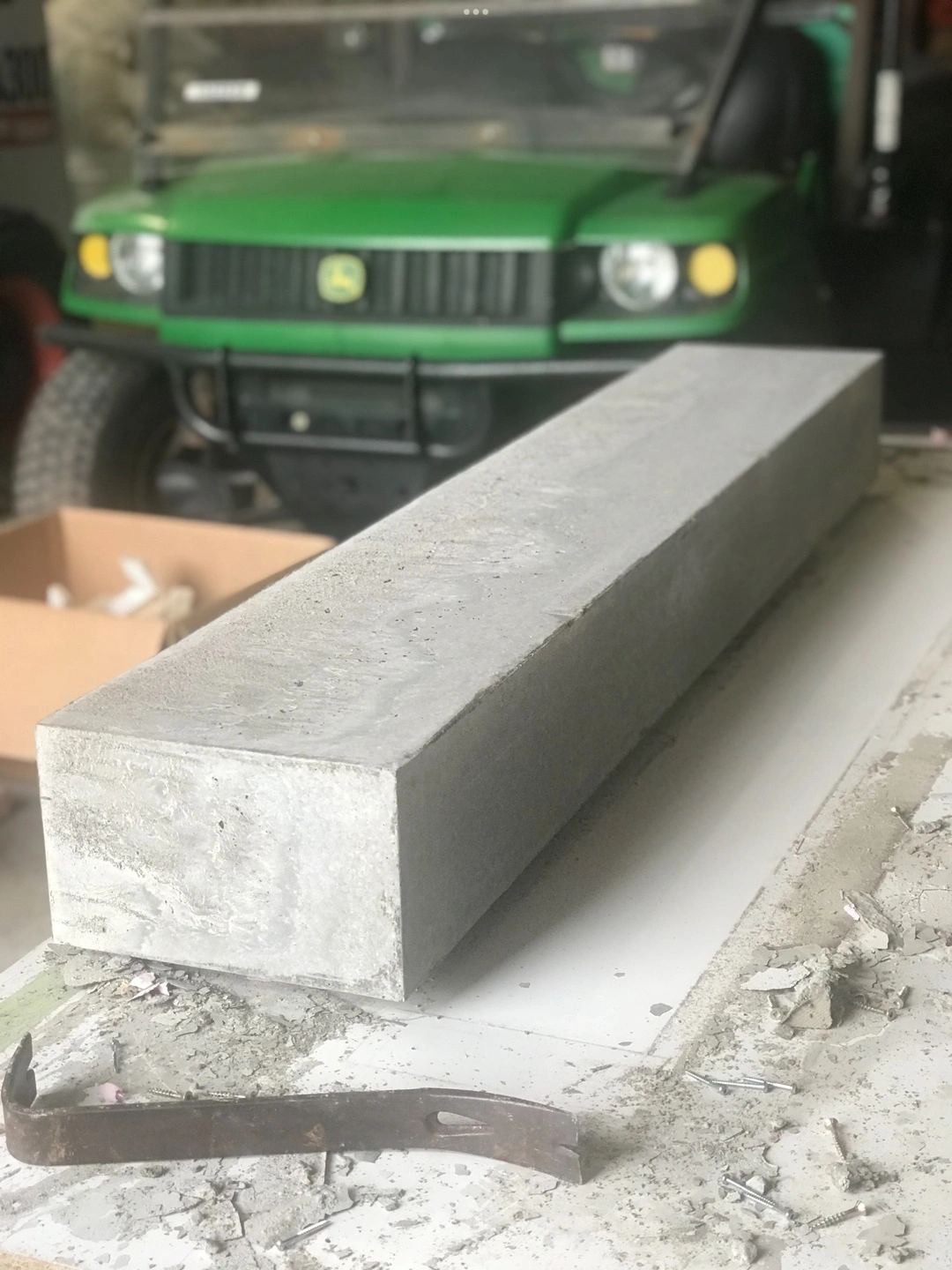 Monolithic, single pour. Custom concrete shelf, mantle, or hearth. Comes with metal mounting system. 10” deep x 56” long