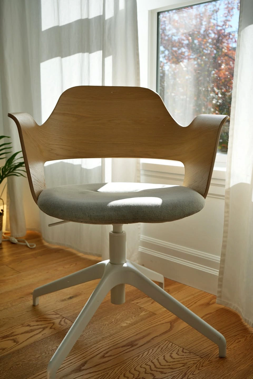 10Gently used IKEA Conference Chair in white-stained oak veneer with Gunnared beige upholstery. Retails for $284 CAD. The chair is in excellent condition—no scratches, sturdy frame, and smooth swivel. Only minor seat fabric marks from a recent cleaning (not stains or damage). Ideal for a home office, reading corner, or dining setup with a modern Scandinavian aesthetic. Comfortable, supportive, and beautifully crafted.