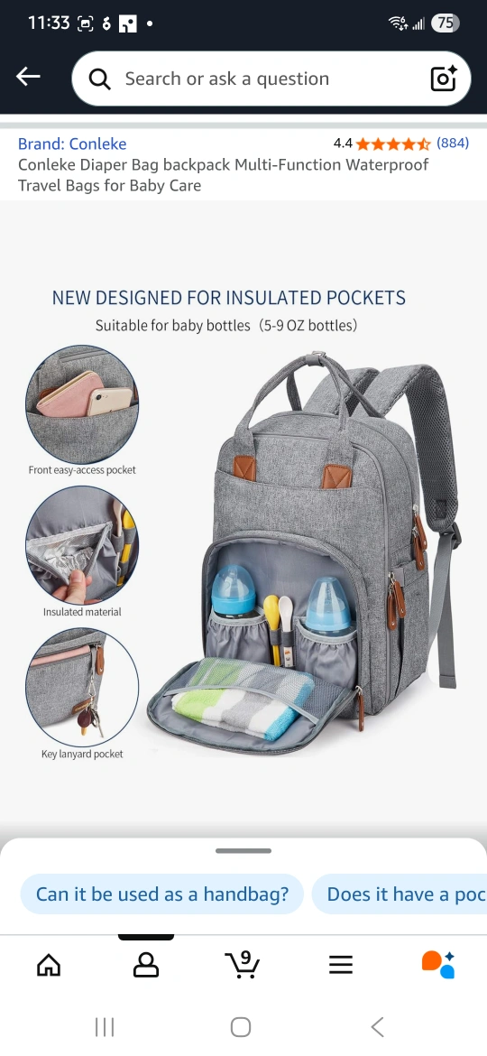 Conleke diaper bag backpack! It's a multi-function bag and waterproof, perfect for baby care and travel. It features insulated pockets suitable for baby bottles, a front easy-access pocket, and a key lanyard pocket. Package Included: 1* Diaper Backpack 2* Stroller hook Specifications: Material: High quality Oxford fabric Dimensions: 11.8l x 7.8w x 16.5h inches Washing Instructions: It is suitable for hand washing. The water tempeture is below 35 degree Celsius, Hang to dry, Do not iron PRACTICAL & CONVENIENT- NEW DESIGNED FOR INSULATED POCKETS, Suitable for baby bottles(5-9 OZ bottles). Our big insulated milk bottle pockets can keep liquids warm or cold for hours compared to the others small pocket. Easy-access side pocket for baby wipes;A net compartment for towel; A hidden pocket with zipper for keys. Conleke Diaper Bag with 2 Stroller Hook. ❤️MUTIPLE COMPARTMENTS & LARGE CAPACITY- (16 POCKETS) Separated storage pockets allow you to organize all your supplies and your baby 's supplies easily.And it 's roomy enough for holding essential items you want to carry for baby. Diaper Bag Size:(Dimensions: 11.8l x 7.8w x 16.5h inches) ❤️WATERPROOF & DURABLE - Comfortable and environmental oxford fabric materials guarantee your baby's healthy & safety. Water resistant design, easy to wipe clean. Choosing our baby diaper bag means you will have a bag that lasts for years. This makes for an ideal baby shower gift to any new parent! ❤️FASHION & FUNCTIONAL- The diaper bag provides not only a fashionable look, but also a pleasant and well-organized condition for you. It can be use as backpack, handbag,stroller organizer bag and fits family stroll. Very stylish and suitable for traveling , excursion, going out, shopping, etc. ❤️Conleke bases on the cutting-edge of fashion trends.