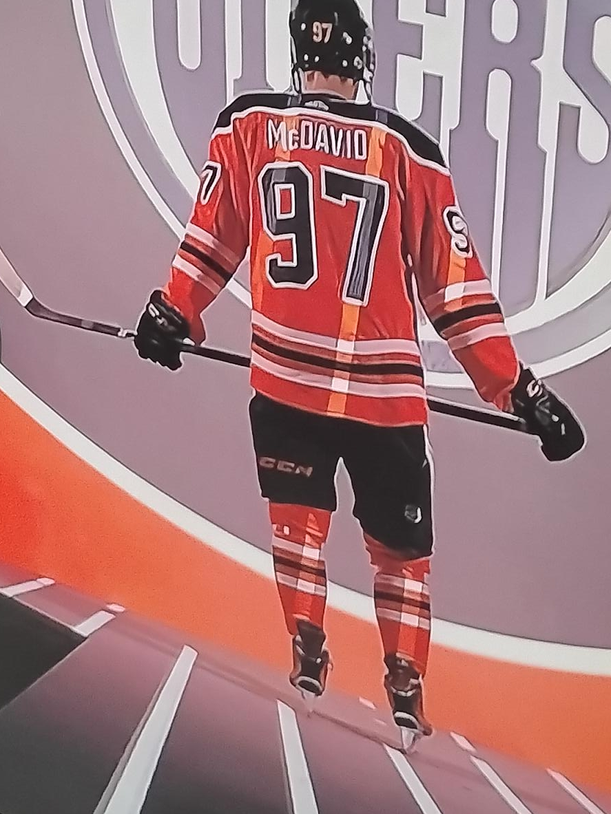 Selling a Connor McDavid Edmonton Oilers jersey panting. It features the number 97 and the classic Oilers colours. The jersey also has CCM branding. and it is Mc David's last year with Edmonton Oilers 123456 met in the back Cash only please