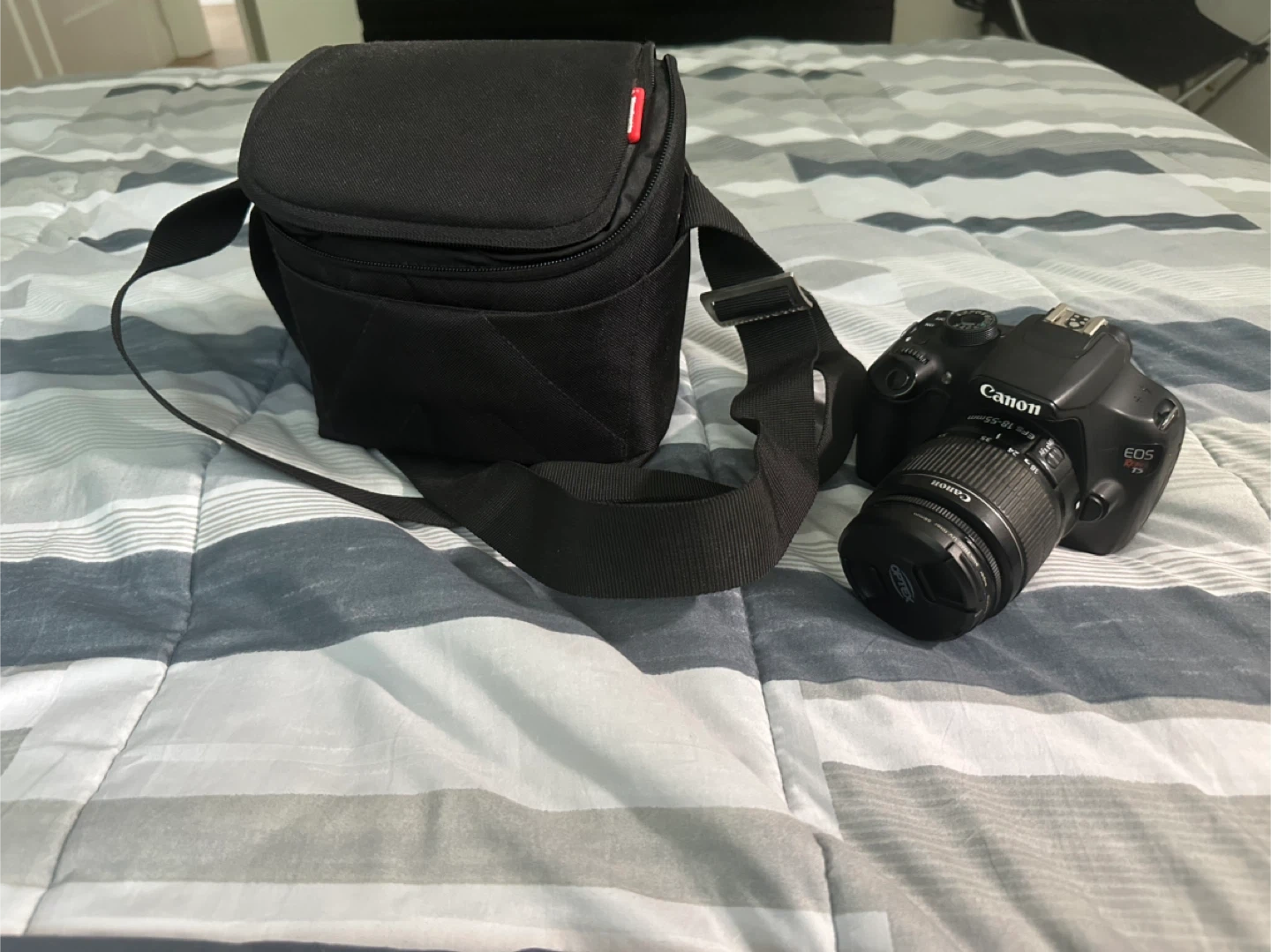 • Canon EOS Rebel T3i body • Canon 18-55mm Image Stabilizer lens • UV filter for lens protection • Original camera bag for easy carrying • Camera strap This camera takes sharp photos and records high-quality video. All buttons, screen, and lens are in good shape. Great for travel, portraits, or everyday use.
