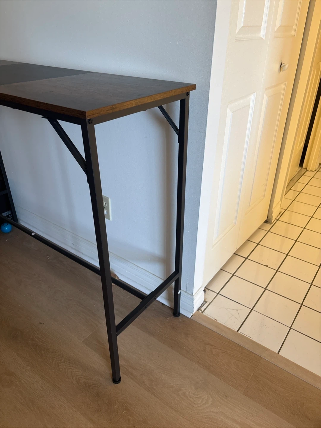 75Selling a console table with a sleek design! The table features a combination of brown and black, giving it a modern look. It's perfect as an entry table or console table. You can also use this as a kitchen dining table as well. Dimensions are approximately 40cm/15.7" wide and 91cm/35.8" tall