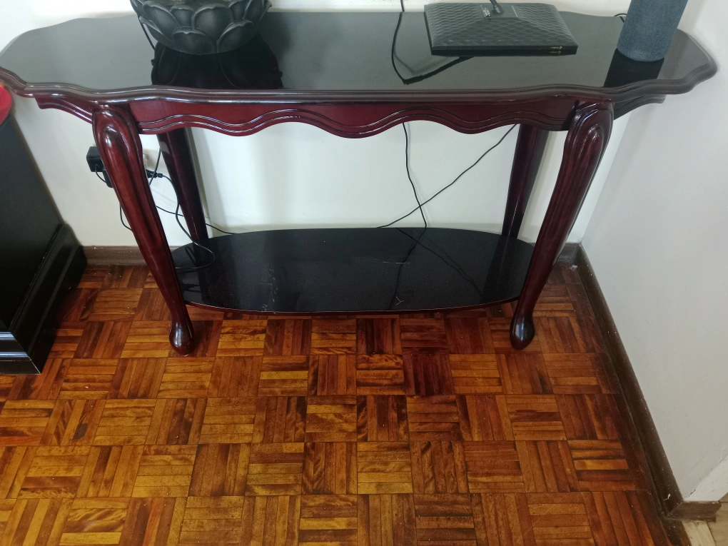 10Selling a lovely console table! It features a dark wood frame with a sleek black top. Perfect for adding a touch of elegance to your entryway or living room. It's in great condition and ready for a new home It's absolutely in new condition no scratches, no marks ...