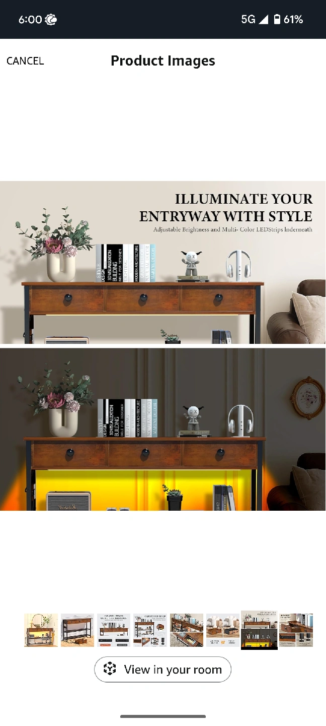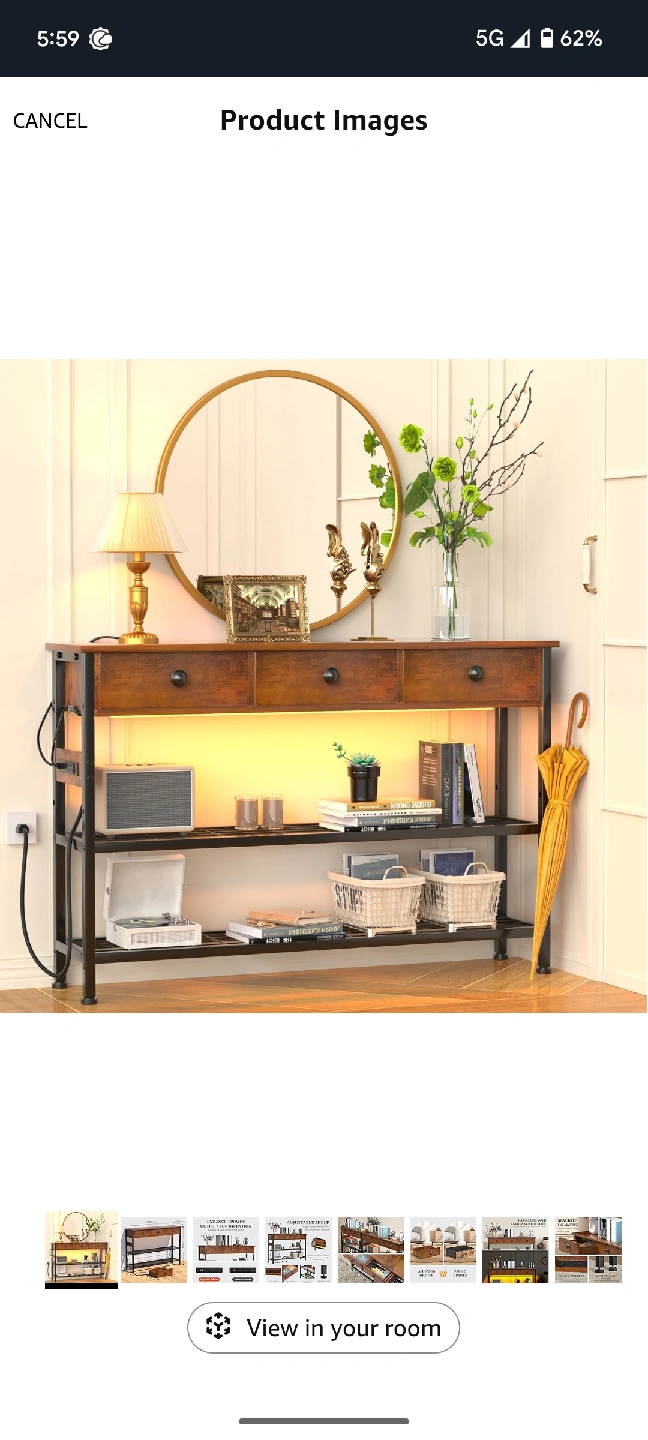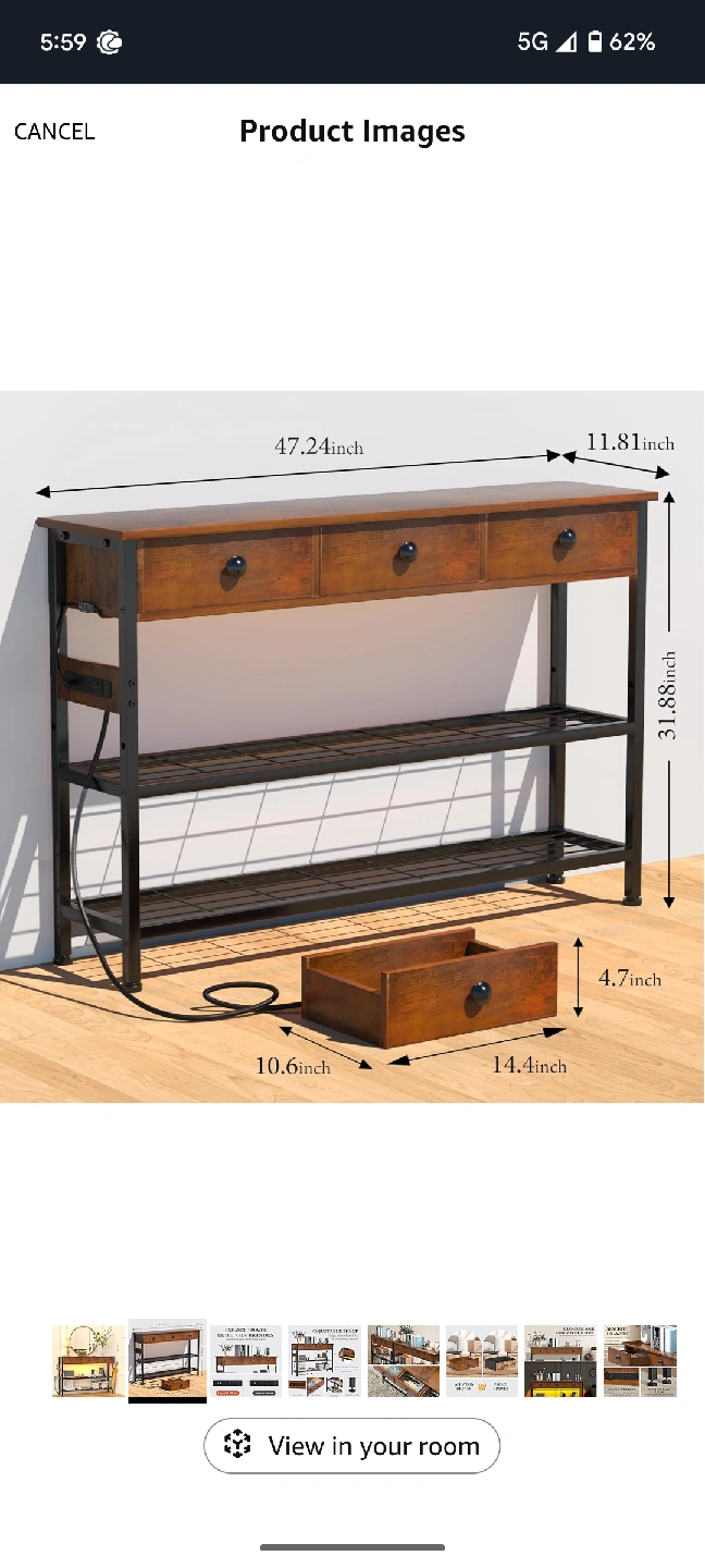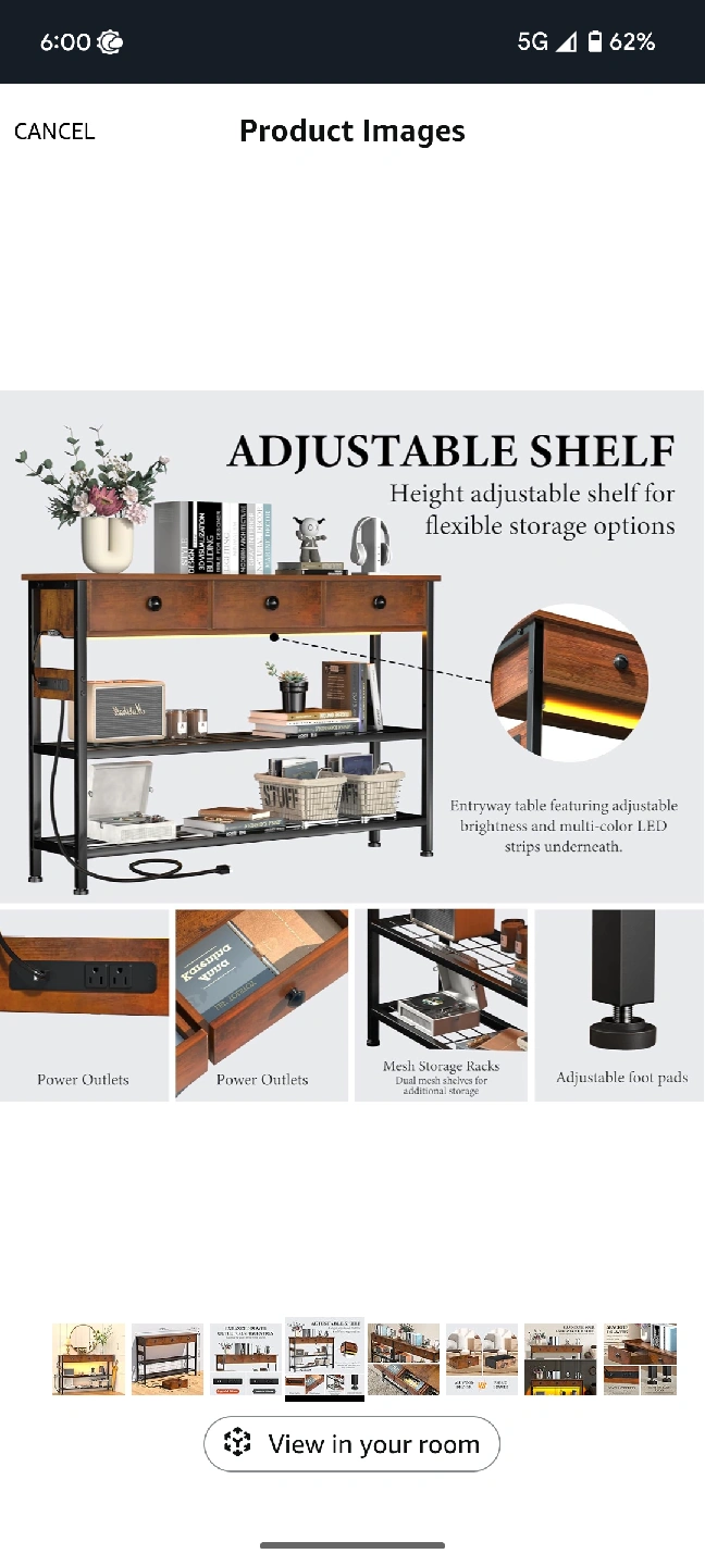 This console table features an adjustable shelf for flexible storage options. It has an entryway table featuring adjustable brightness and multi-color LED strips underneath. Enhanced power outlet configuration maximizes the utility of your power sources. Dimensions are 47.24 inches x 11.81 inches x 31.88 inches