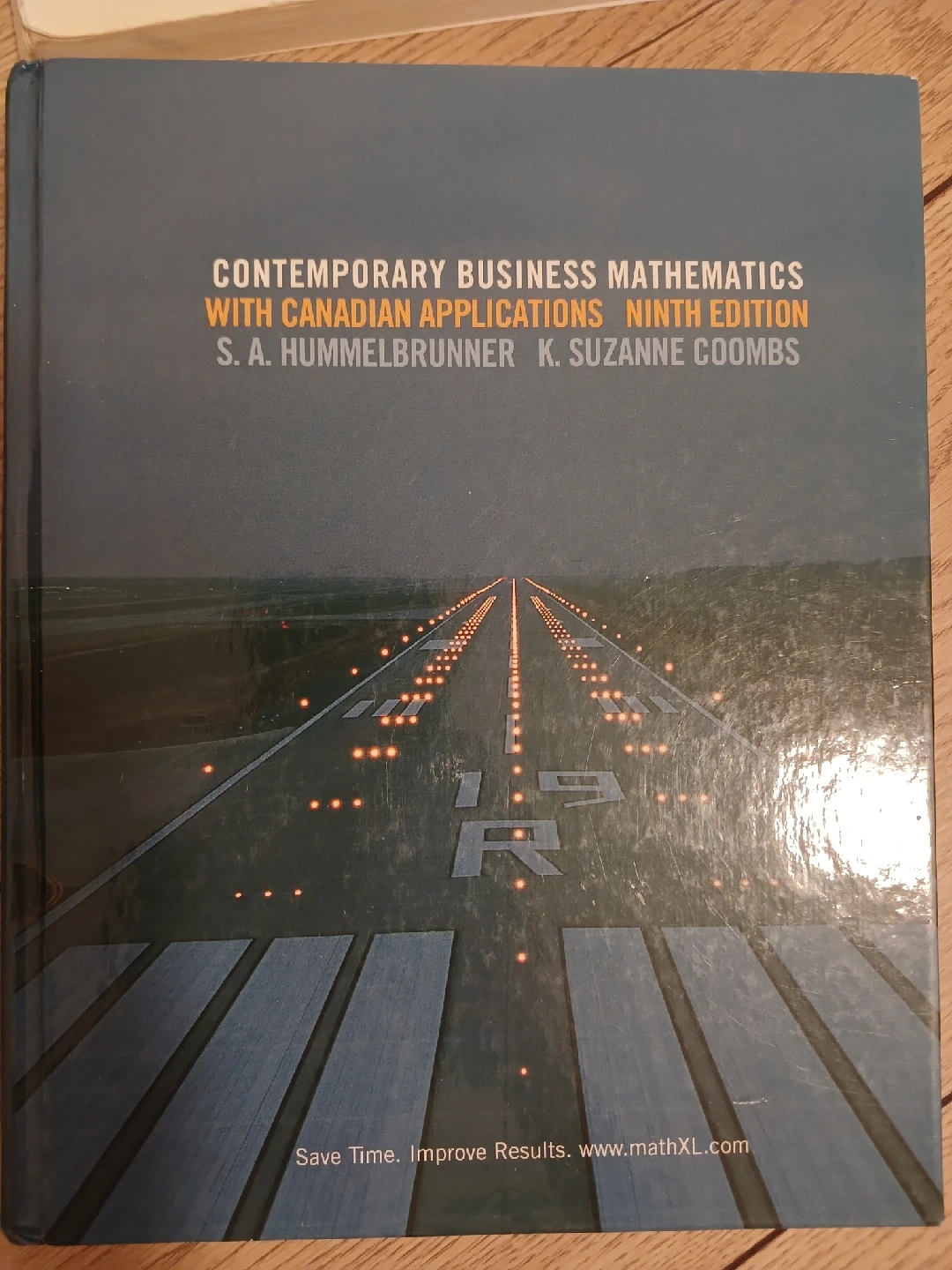 43Selling a copy of Contemporary Business Mathematics with Canadian Applications, Ninth Edition, by S. A. Hummelbrunner and K. Suzanne Coombs. Great for business students!