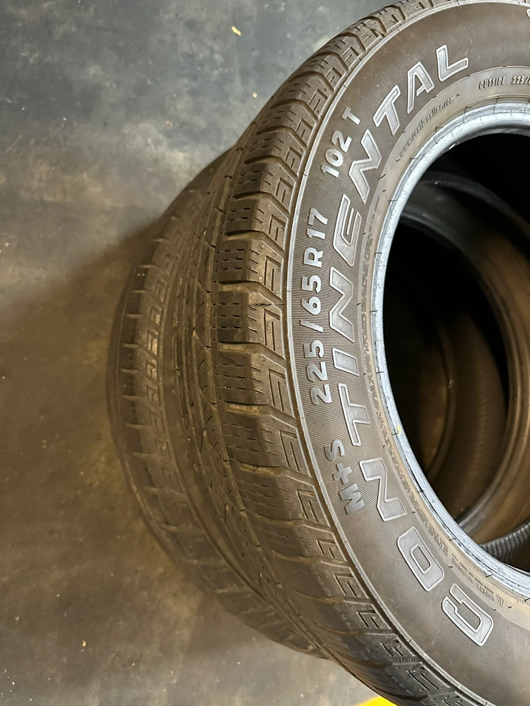 14Selling a Continental tire, size 225/65R17. It has the marking 102 T on it. Perfect for getting your vehicle ready for any weather!