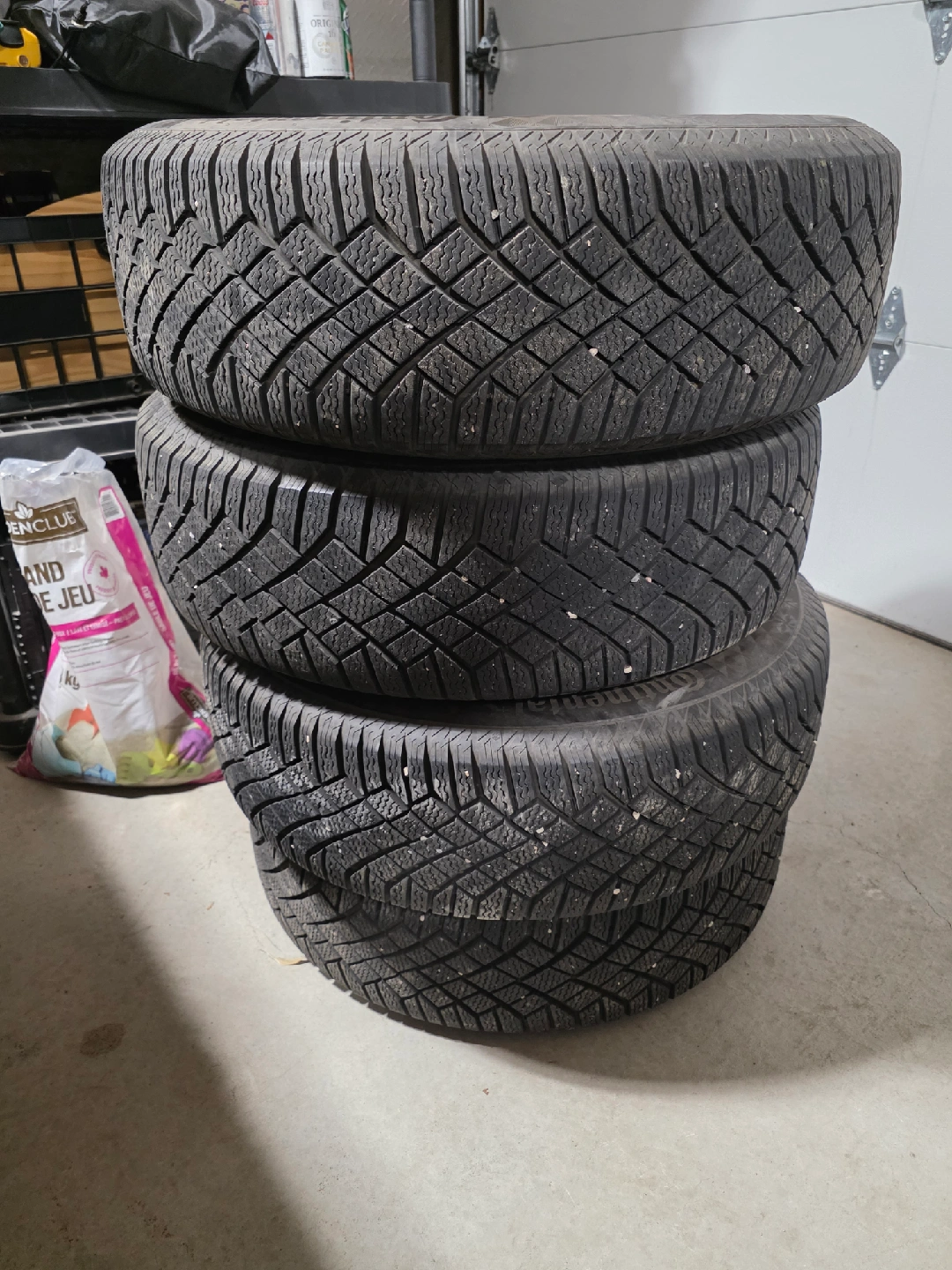 Selling a set of Continental Viking Contact 7 winter tires. The size is 215/65R17. They are used but in real good condition and ready for the winter season! - EV-compatible. - Improved wet grip and braking performance. - Perfect aquaplaning and slushplaning performance and enhanced handling characteristics in every weather condition. - Powerful handling and braking on snowy and icy roads. Come with winter rims as a bonus. Only available for pick up