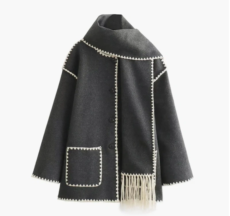 60Brand: Commense Condition: New – completely unused, never worn, in excellent condition. Composition: 100% Polyester Fabric Type: Woven Thickness: Regular Sleeve Length: Long sleeves It comes along matching tassel scarf.