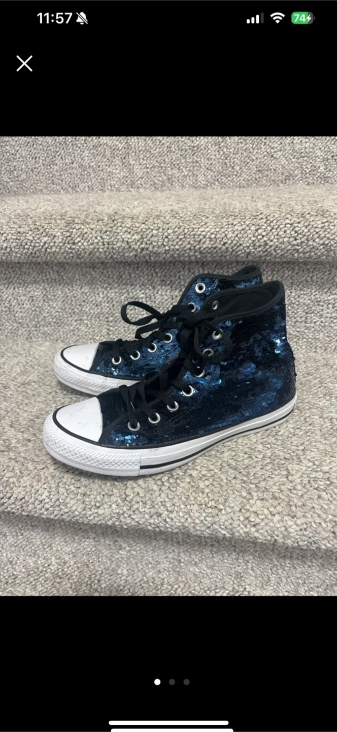 195Here are some Converse All Star high top sneakers with a sequin design! They're in great condition and ready for a new home size 7.5 pick up cash only