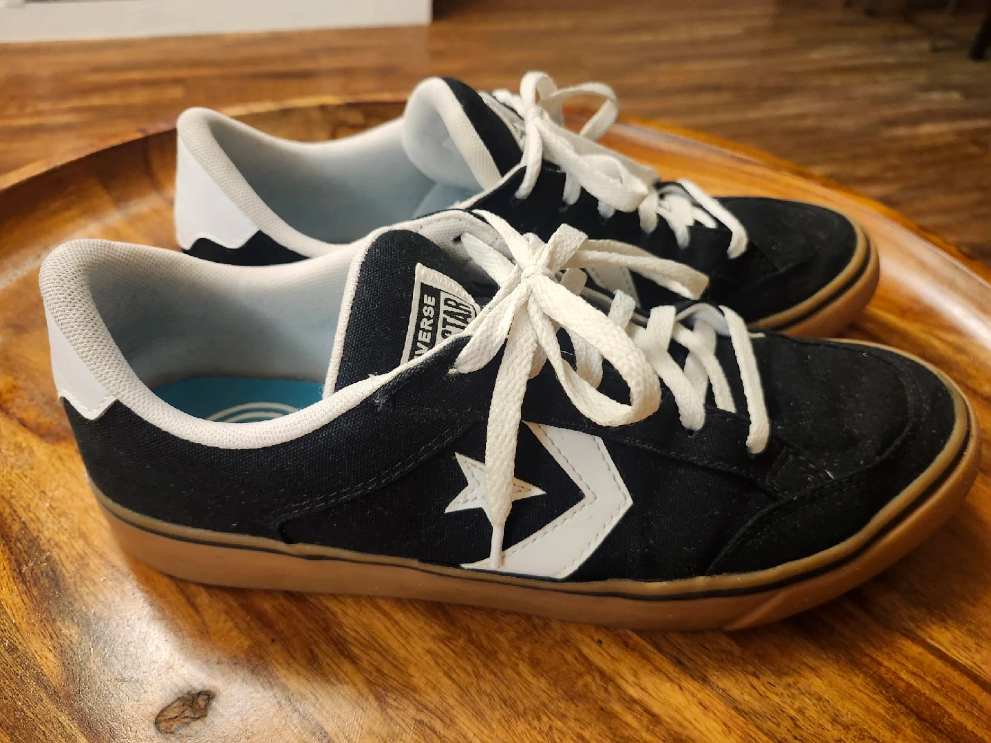 436Converse All Stars, skate style, black and white, in like new condition, just no box. Mens Size 10, extra pair of laces included.