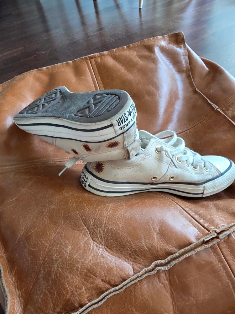 277Converse All Star sneakers. They're in good condition and ready for a new home! Perfect for everyday wear.I am normally a size 7 big lately have found my foot to mot comfortable inna 7.5 So just looking to move out a bunch of 7s I bought in the last year that I tried to force wear. Lol These are still in great condition!