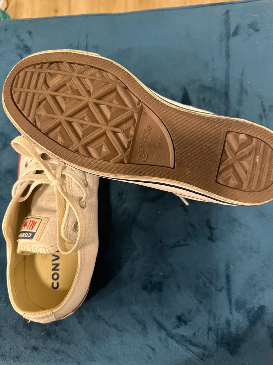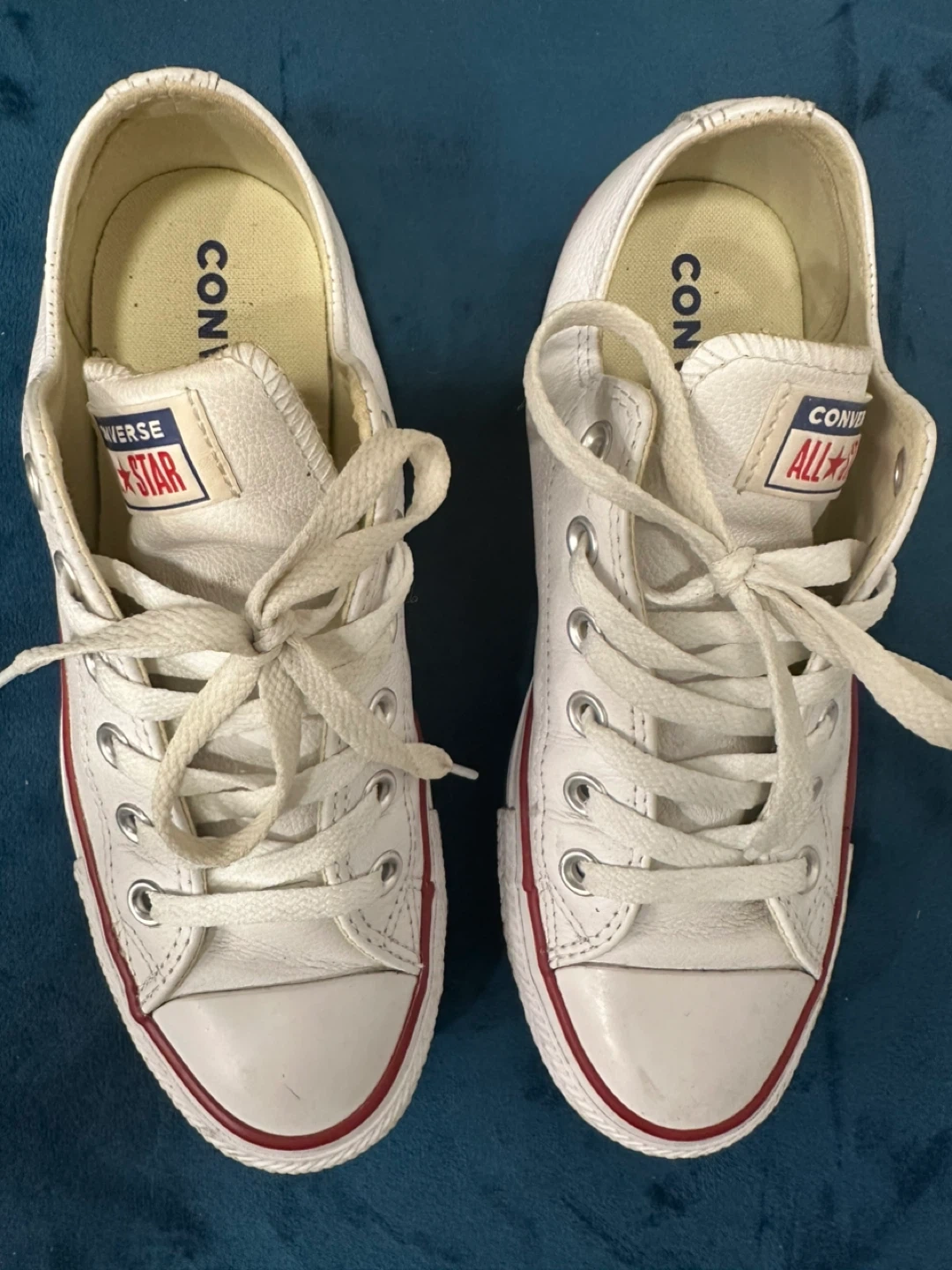 86Selling a pair of white Converse All Star sneakers! They've got the classic look with the red and white detailing. These are in good used condition and ready for a new home. Pickup in downtown area! Cash only!