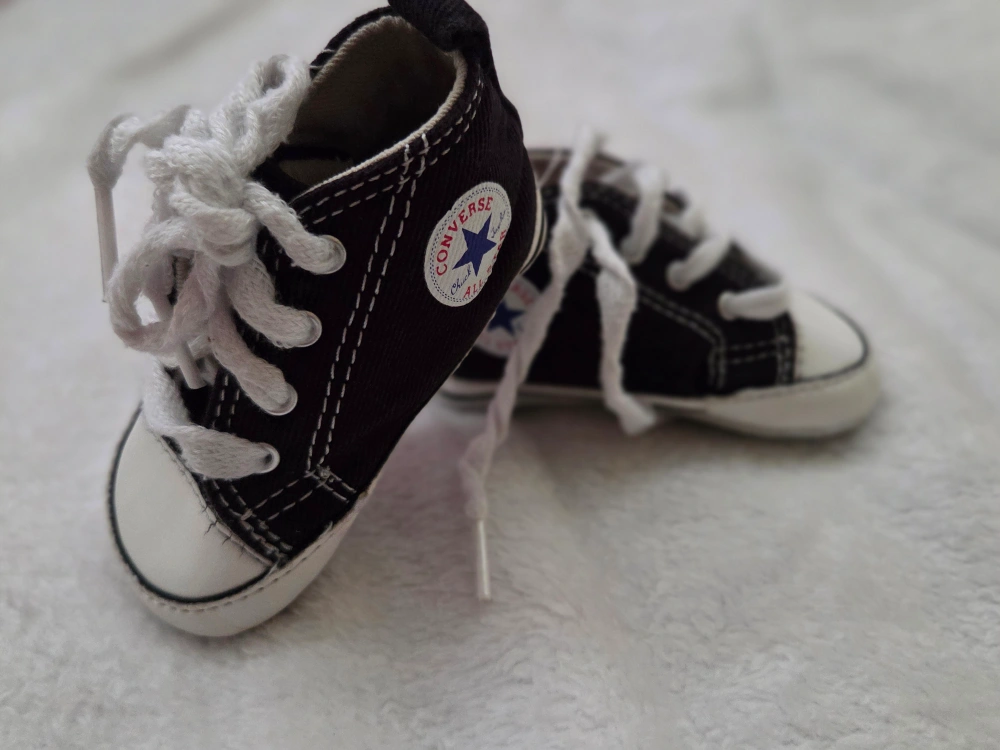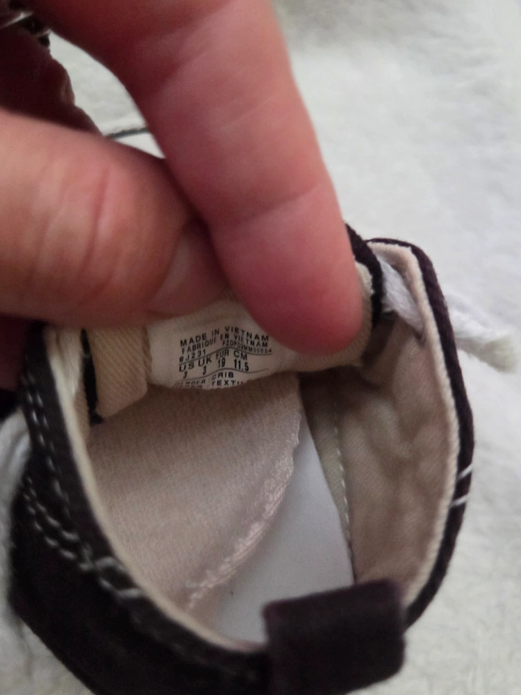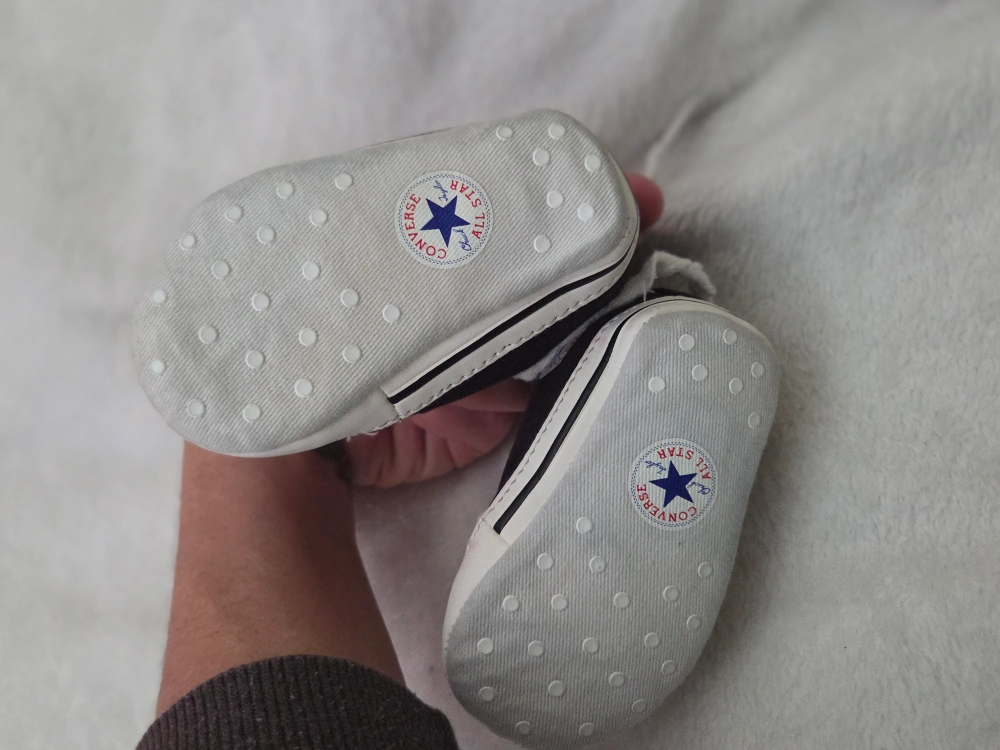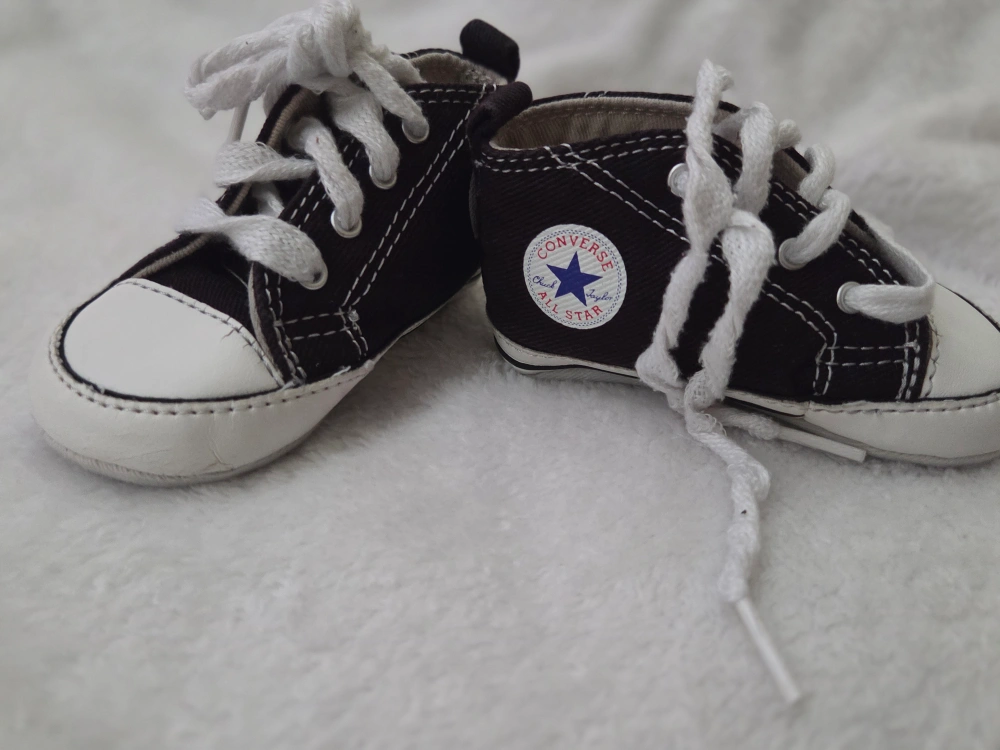 These adorable Converse All Star shoes are in okay! They're a size 3, perfect for your little one. The classic black and white design will match any outfit. These are a must-have for any stylish baby! ** Refer to pic #3 as to why I chose "okay condition" - otherwise, they are in good condition. ** Price marked accordingly