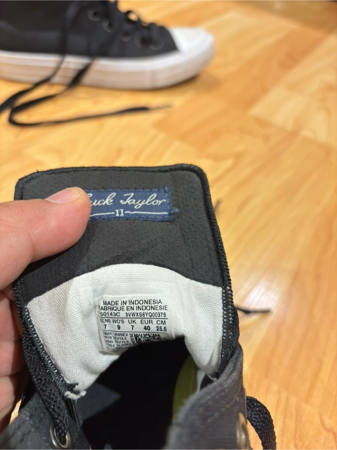 Selling a pair of Converse Chuck Taylor All Star high tops in black! These are in great condition and ready for a new home. They're a size 7 in women's.