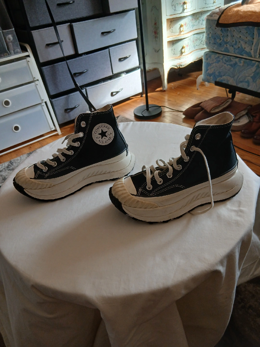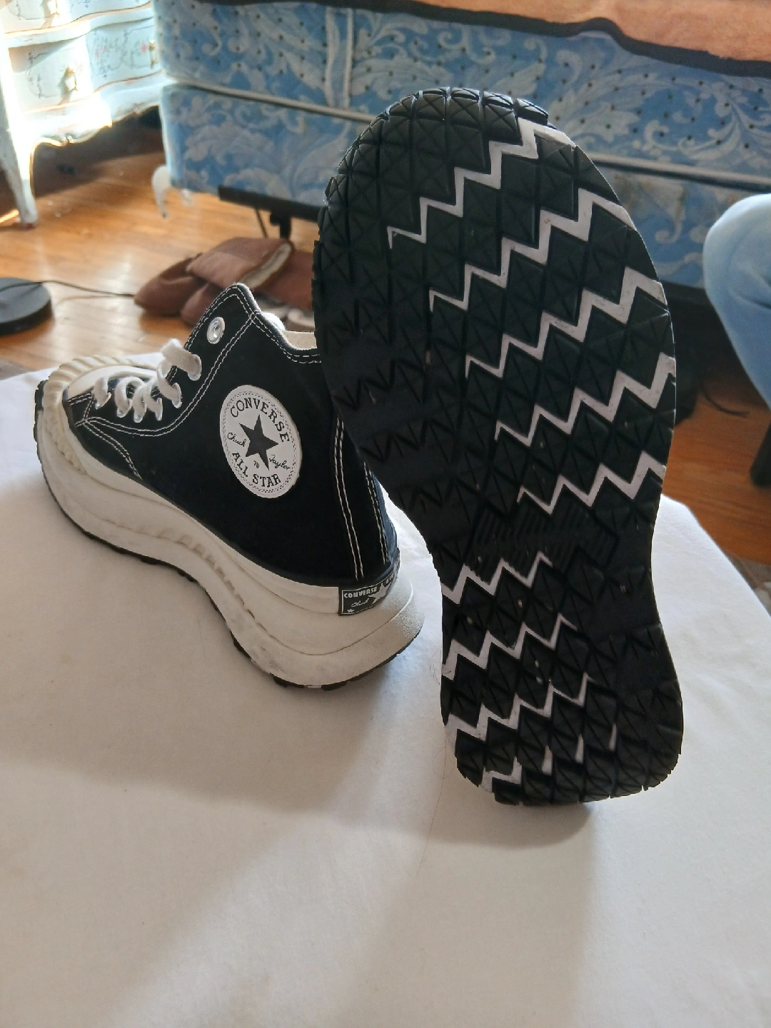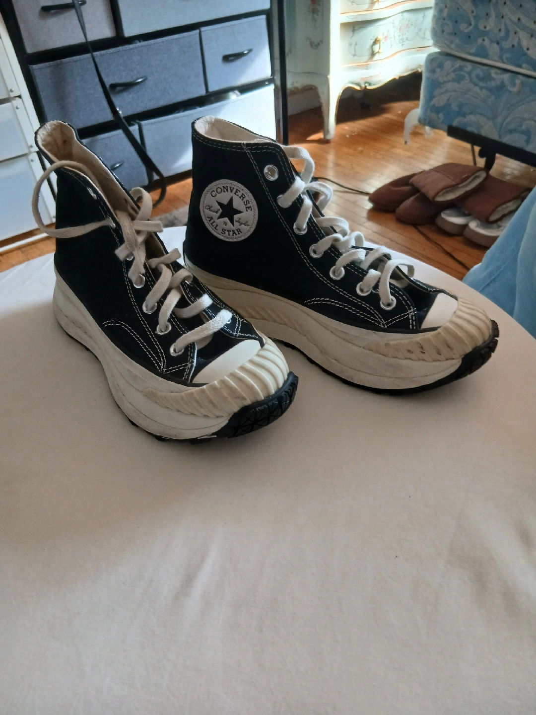 70Selling a pair of Converse Run Star Hike High Top sneakers in black. These platform sneakers are in great condition and ready for a new home! They feature the classic Converse All Star logo and a unique, chunky sole for added height and style