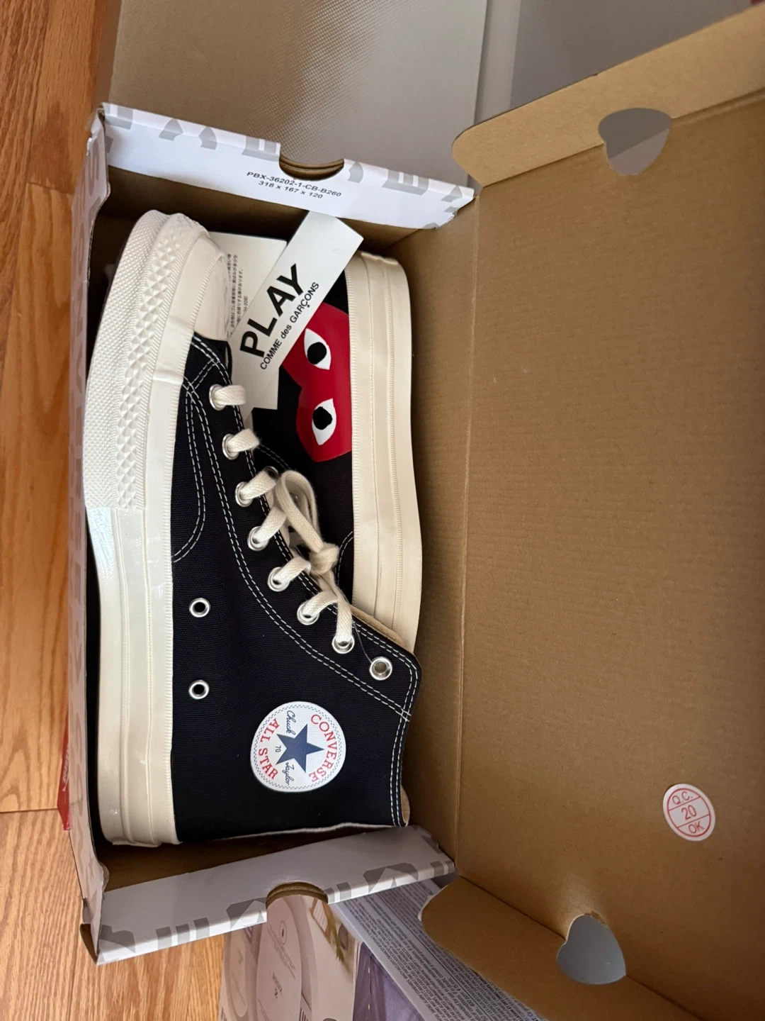 65Selling a pair of Converse x Comme des Garçons Chuck 70 Hi sneakers in men's US size 9! These are in great condition and come with the original box. A stylish collaboration that's sure to turn heads!