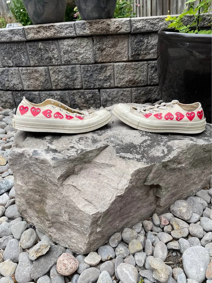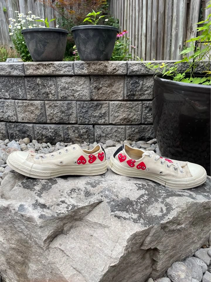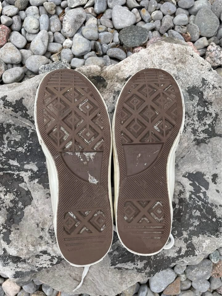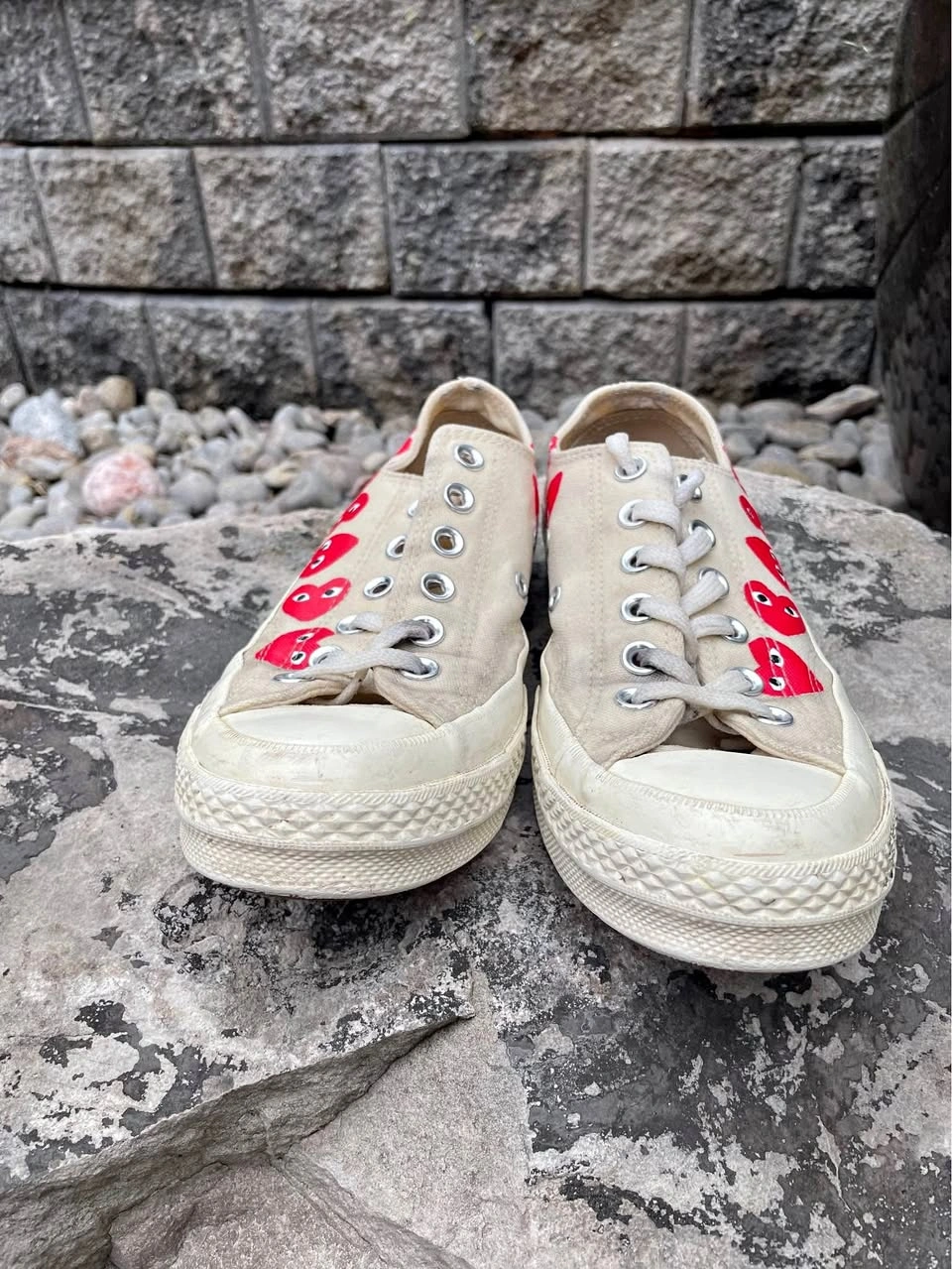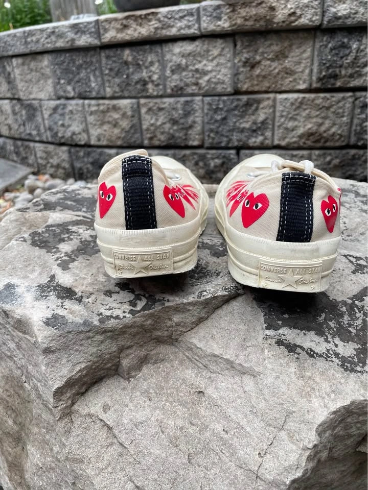10A little dirty on the back and the front is in pretty good condition. There's a bit of outer bottom heel damage. Overall good condition. Has a complete set of laces.