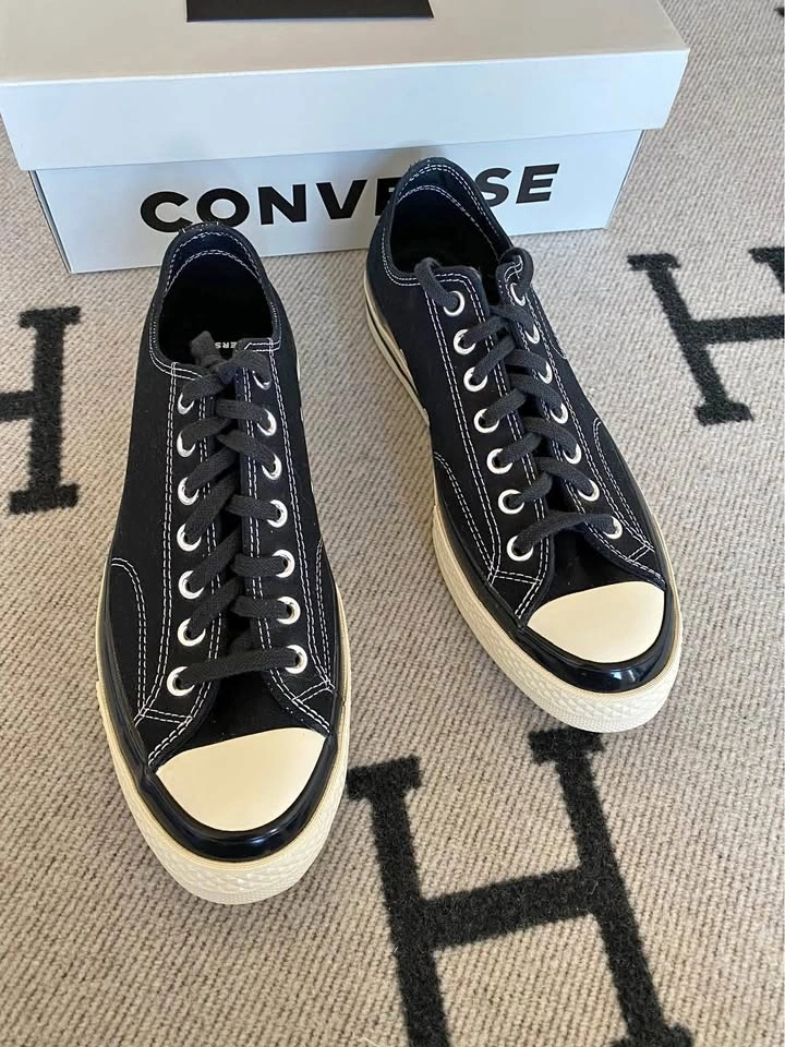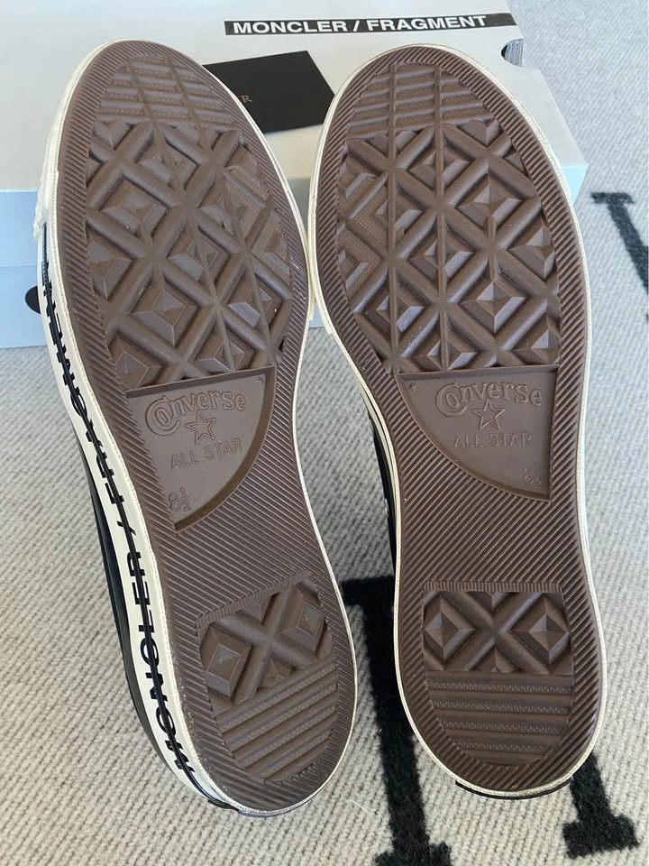 Step into style with these Converse x Moncler x Fragment Chuck Taylor All Star 70 sneakers. These used, but well-maintained shoes feature a sleek black canvas upper, complemented by the iconic Chuck Taylor silhouette and unique Moncler/Fragment design elements. A stylish addition to any wardrobe, these sneakers offer both comfort and a distinctive edge. Brand New Unworn Condition. Size 42 US9. * Brand: Converse * Collaboration: Moncler / Fragment * Model: Chuck Taylor All Star 70 * Colour: Black Size 42 Men’s US9 Remember, if the ad is up, they're still available!