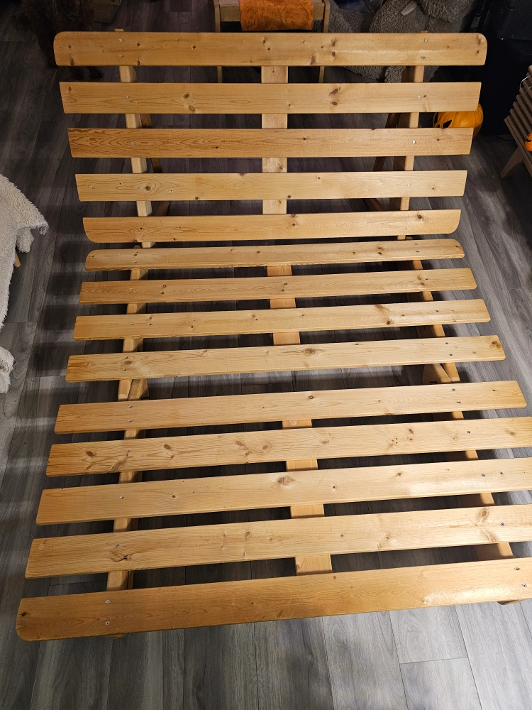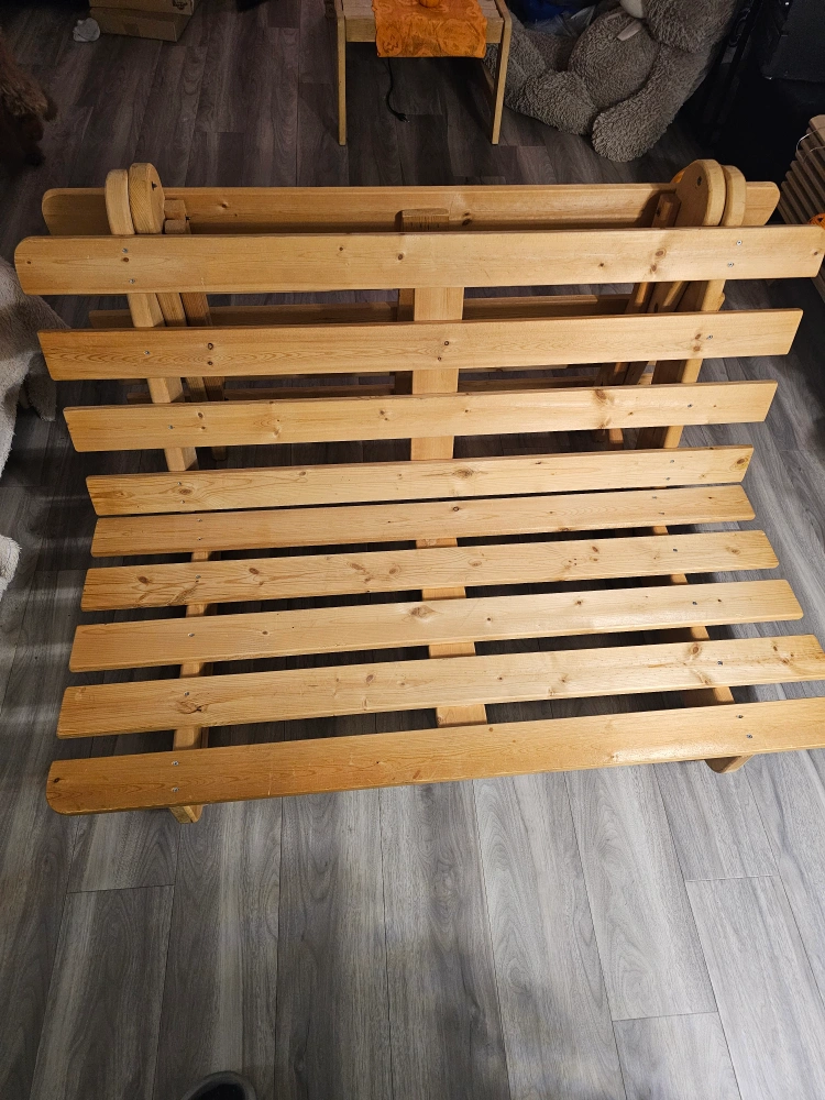 36Versatile couch /bed/futon Was using it in the living room but getting a larger couch. Wooden base easily disassembles into 3 pieces for easy travel. Covers come off and are machine washable. Pu new west, delivery possible for a fee depending on location First come first serve