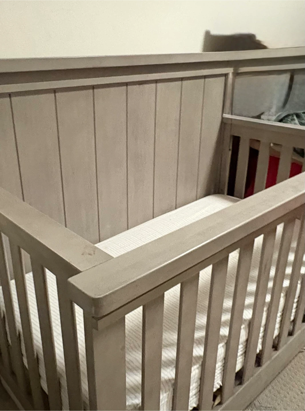 Selling a convertible crib in good condition. It's a sturdy and reliable crib that will be perfect for your little one. It has a neutral colour that will fit in any room
