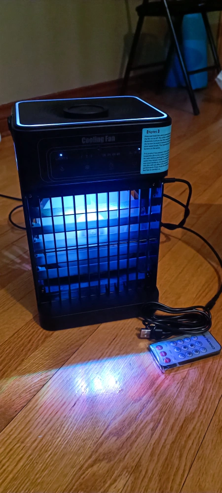I'm selling a cooling fan that comes with a remote control. It's in great condition and includes the original box. It's lightweight and portable, perfect for keeping cool this summer!