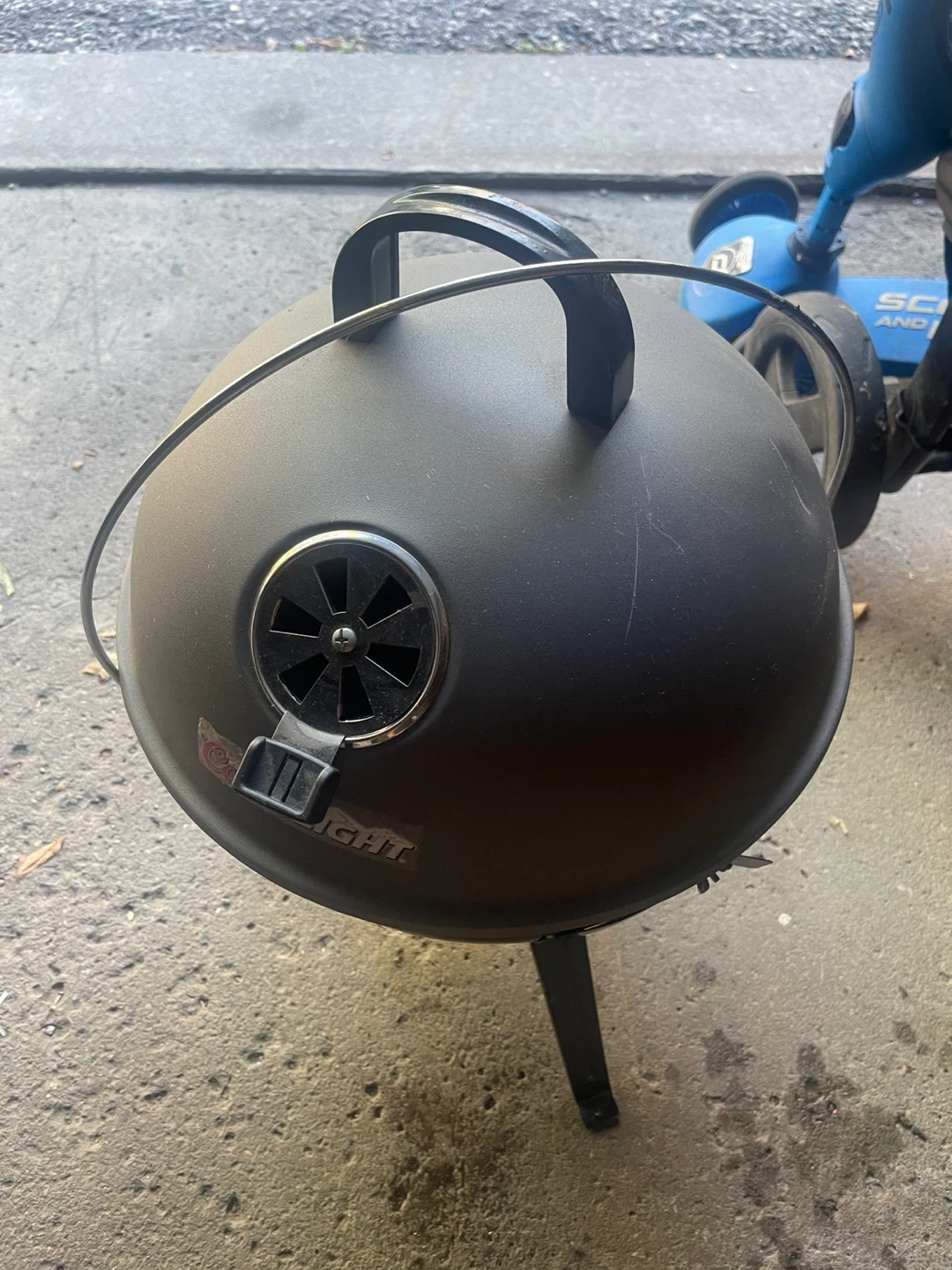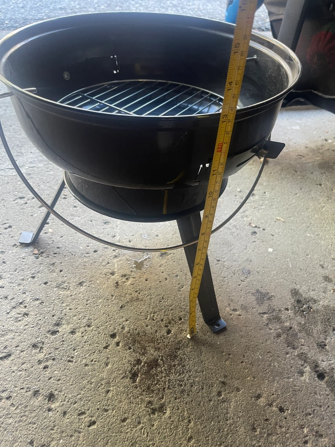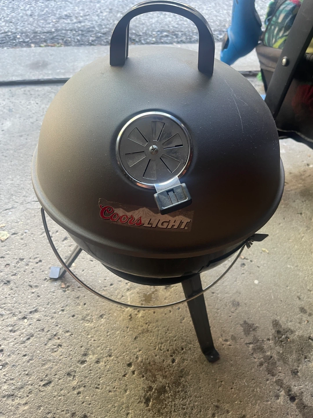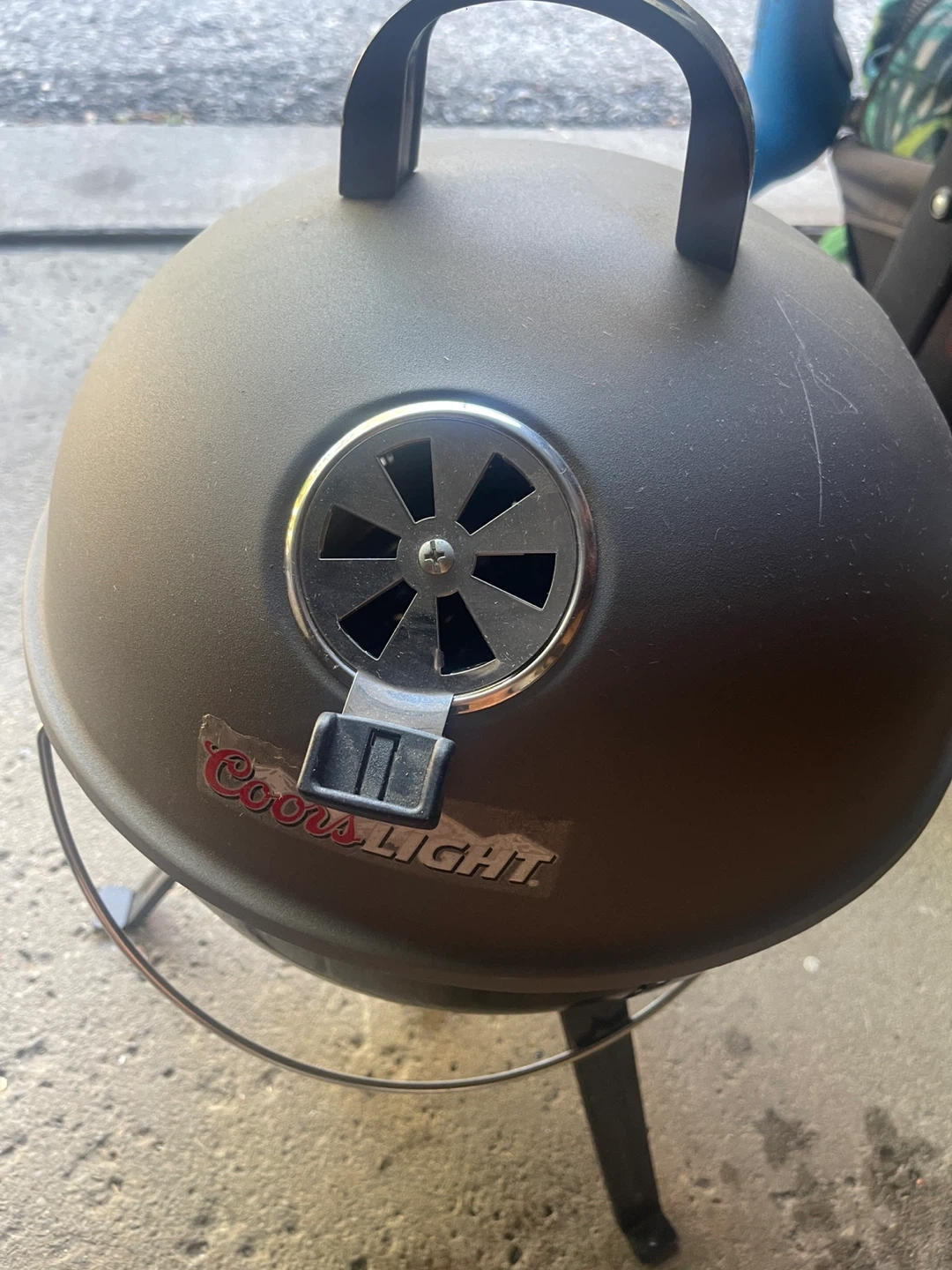 There is no top grille.Looking to sell a portable charcoal grill with a Coors Light logo on the front. It's great for small spaces or taking on the go. It has some wear and tear but is still in good working condition. The height is about 18 inches. Perfect for grilling some burgers or dogs