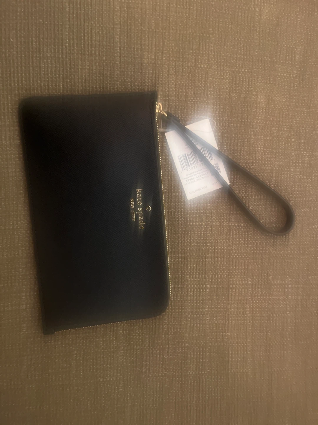 Selling a Kate Spade wristlet wallet in black. It's a stylish and practical accessory to keep your essentials organized. The wristlet is in great condition and ready for a new owner! Originally bought for CAD $179